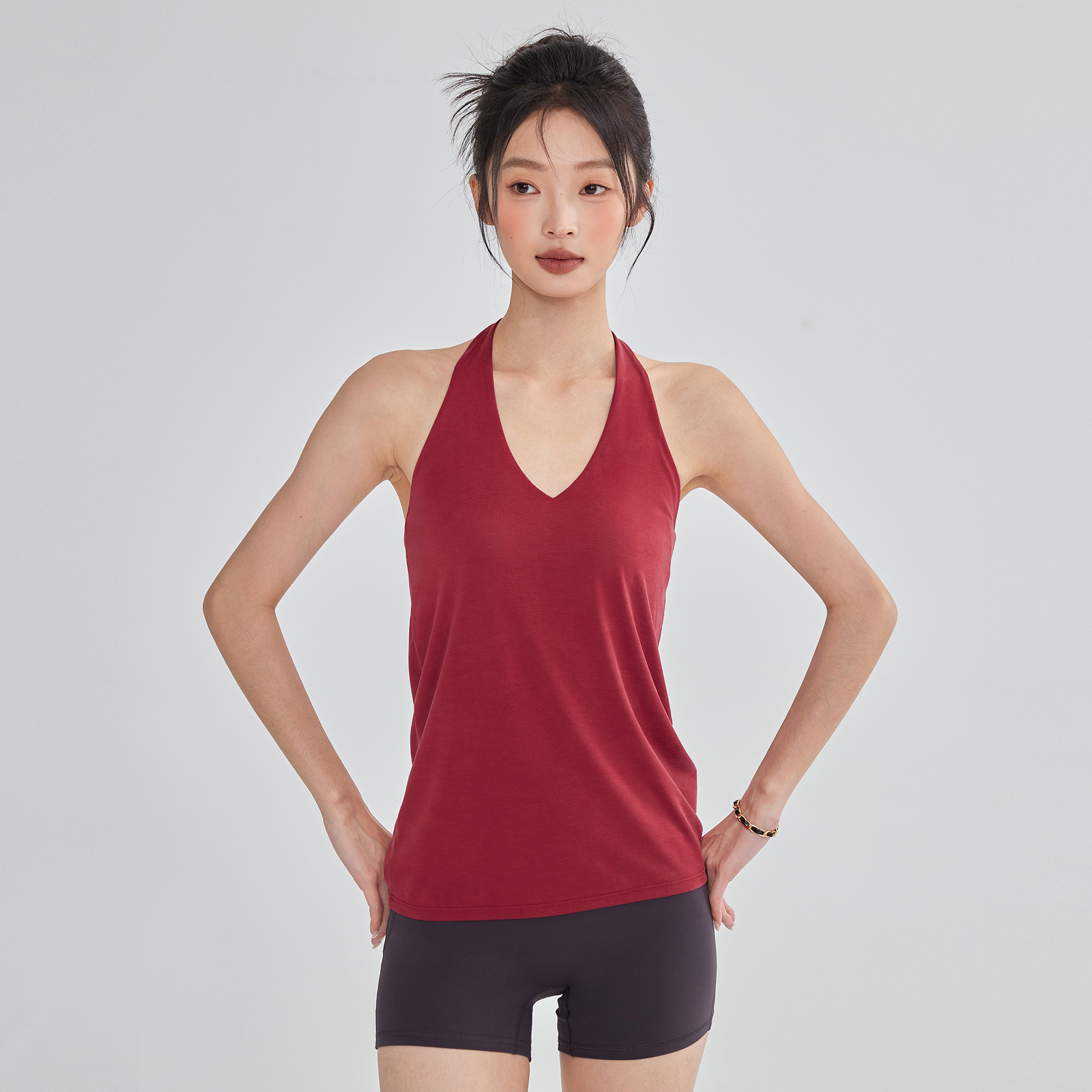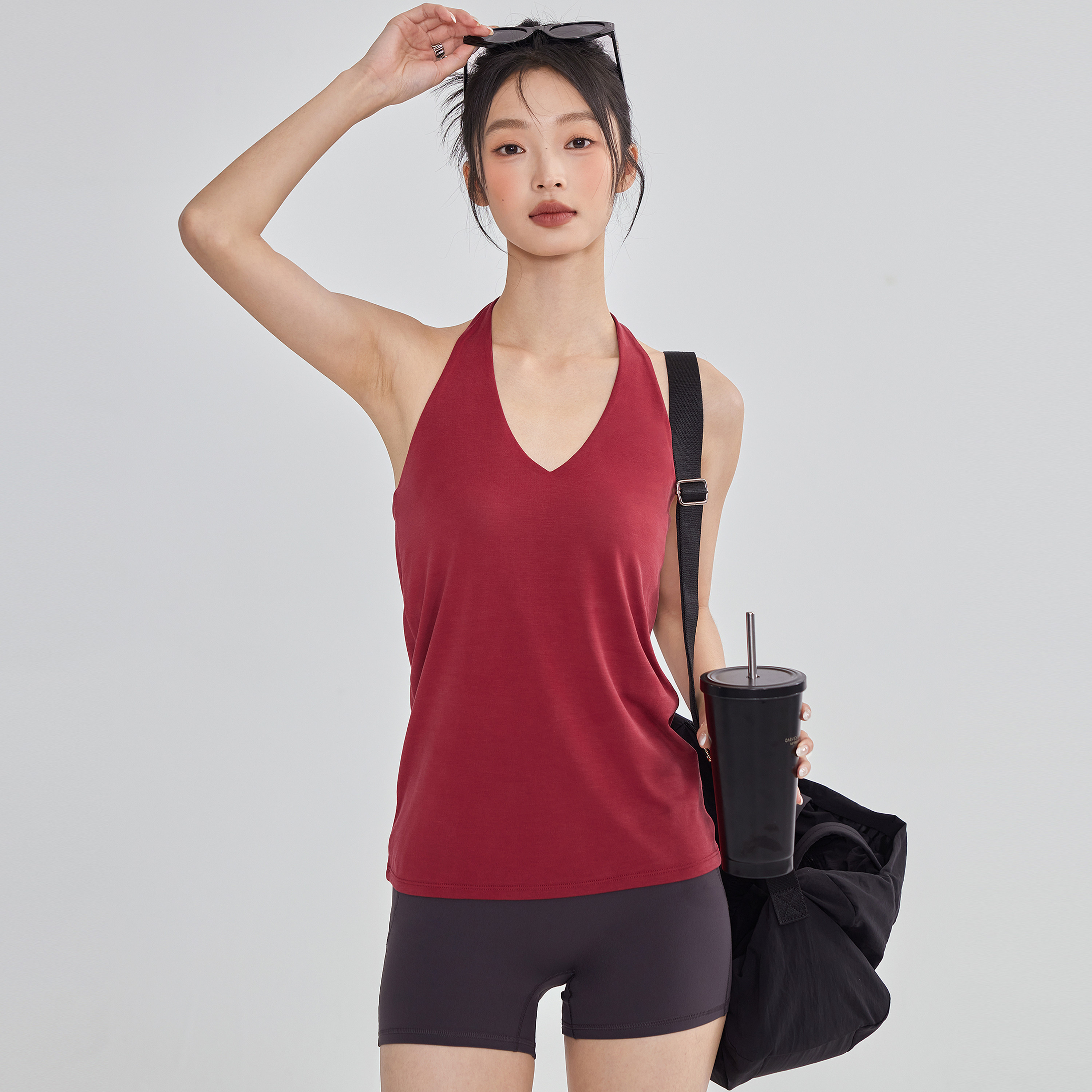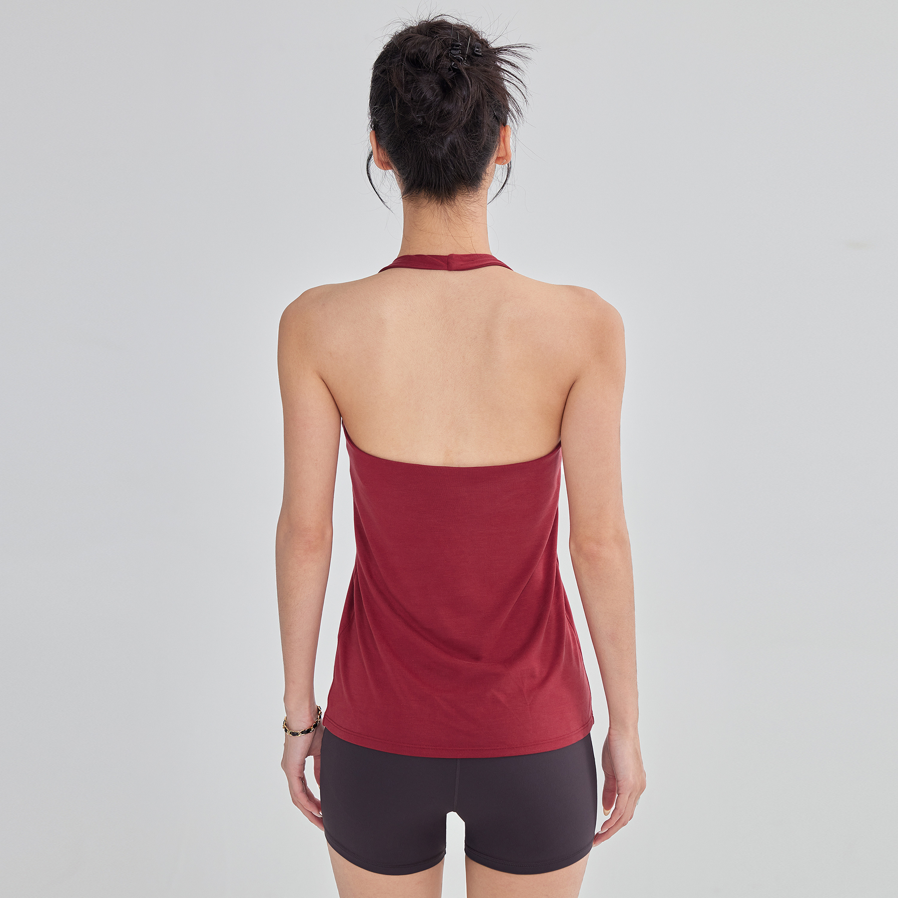 云端贝壳挂脖运动内衣女宽松外穿带胸垫瑜伽背心普拉提健身上衣新