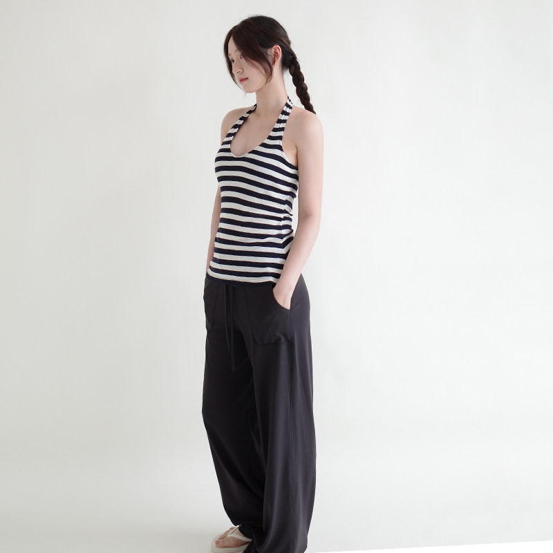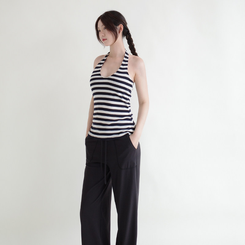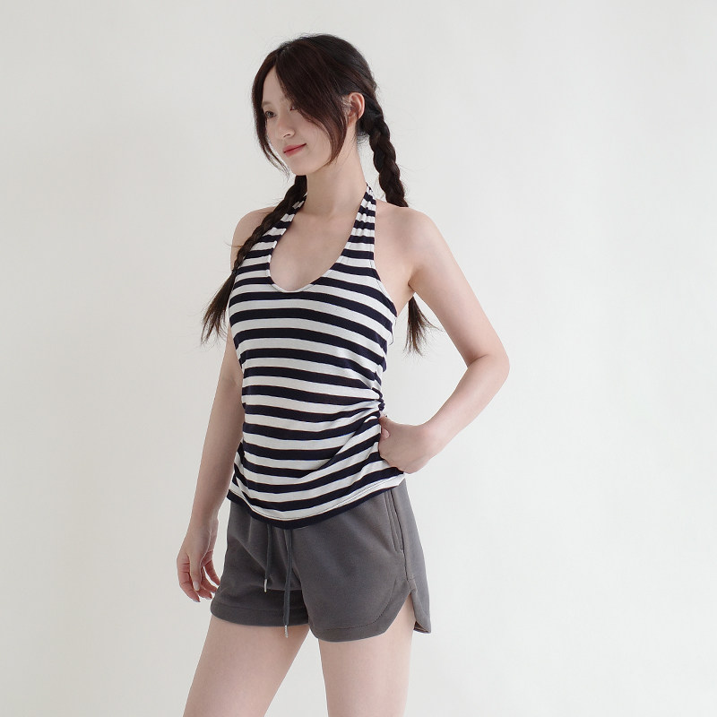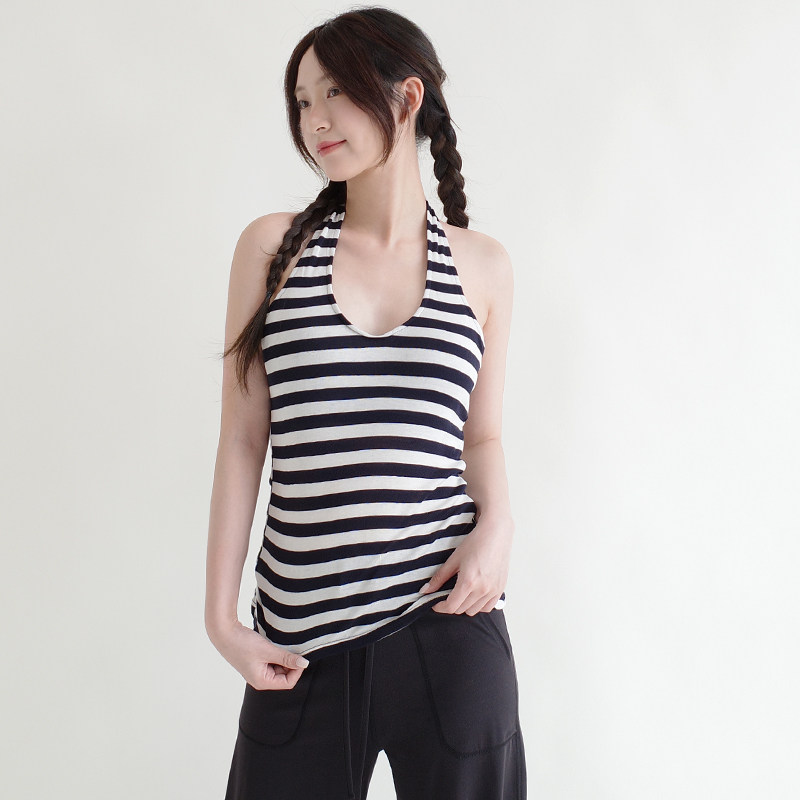 瑜伽背心女2025夏季带胸垫条纹宽松挂脖健身上衣U领露背运动文胸