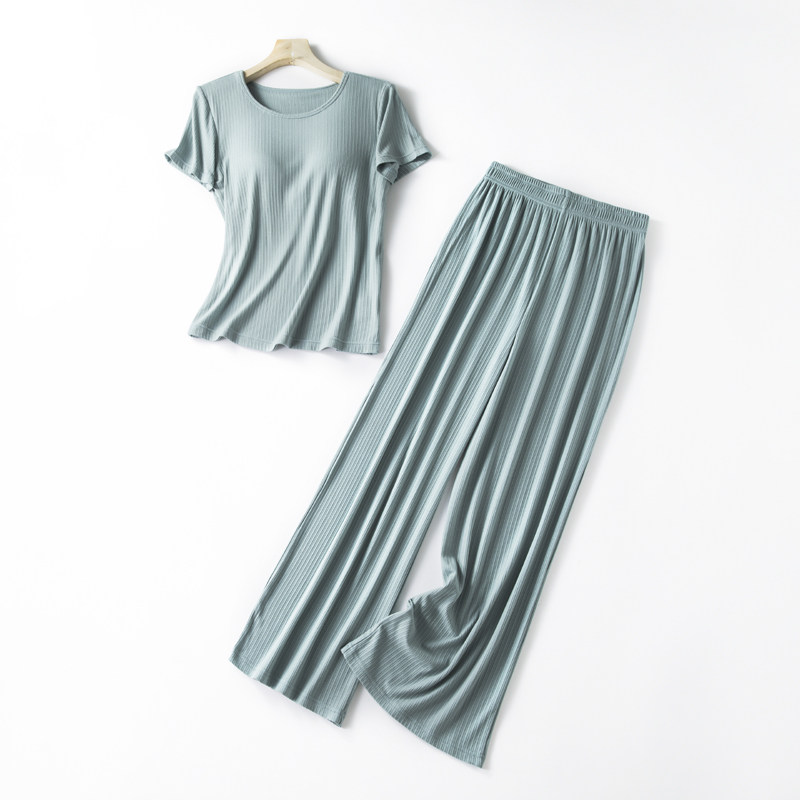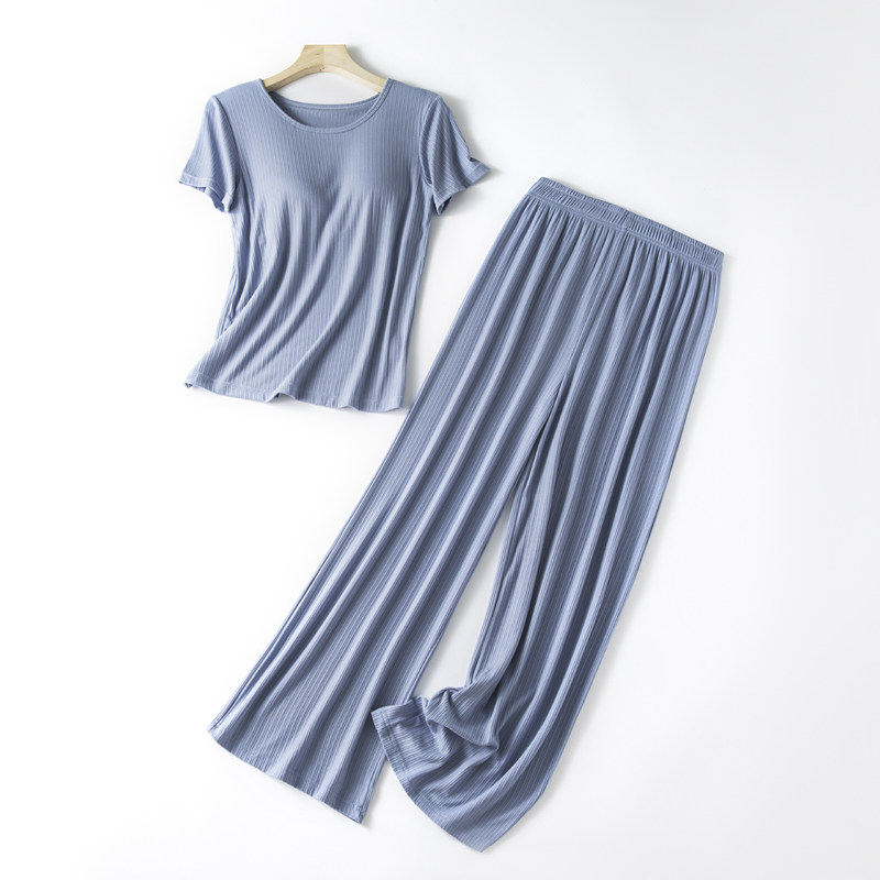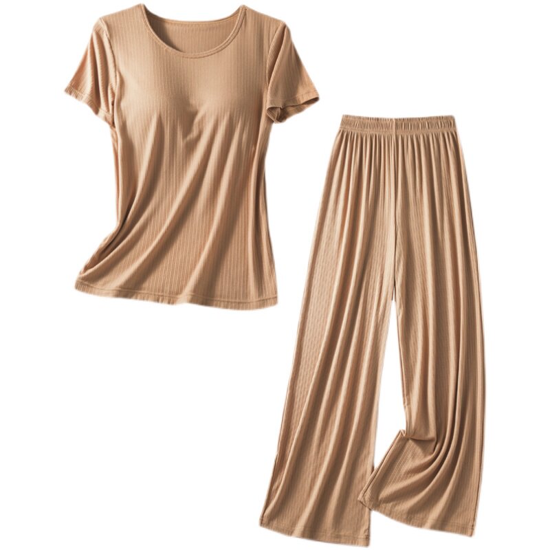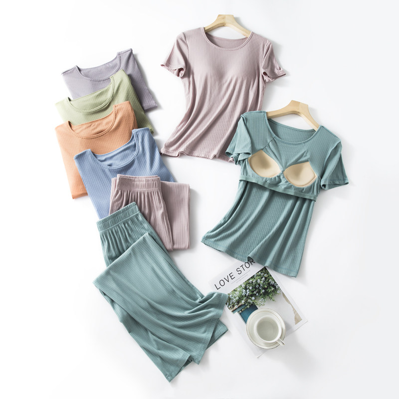 女士莫代尔带胸垫短袖长裤薄款大码休闲运动瑜伽家居服两件套装夏
