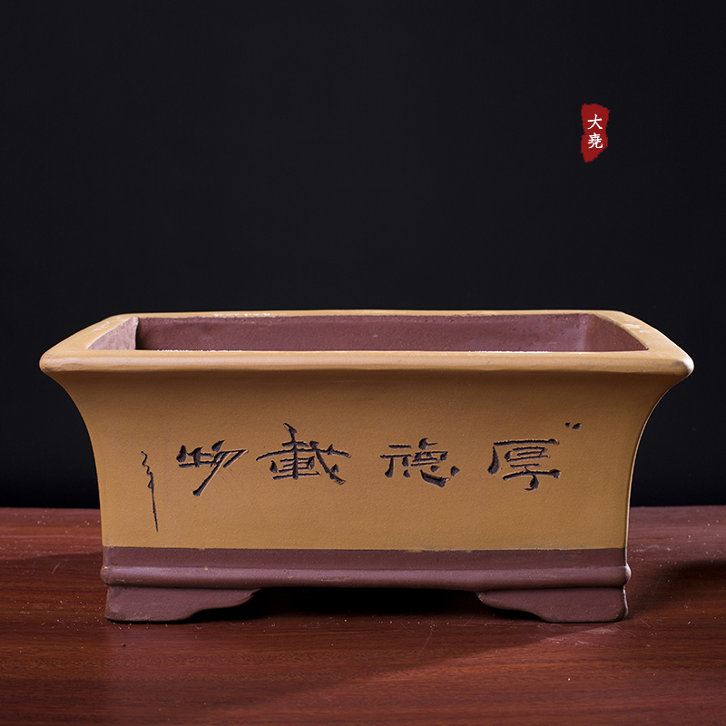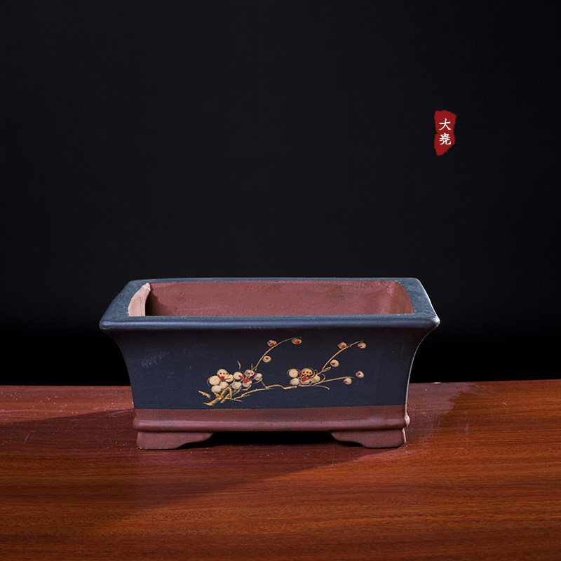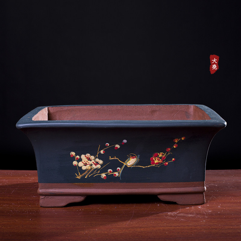 透气紫砂盆景花盆长方形特大口径多肉清仓绿植物陶瓷假山四方盆栽