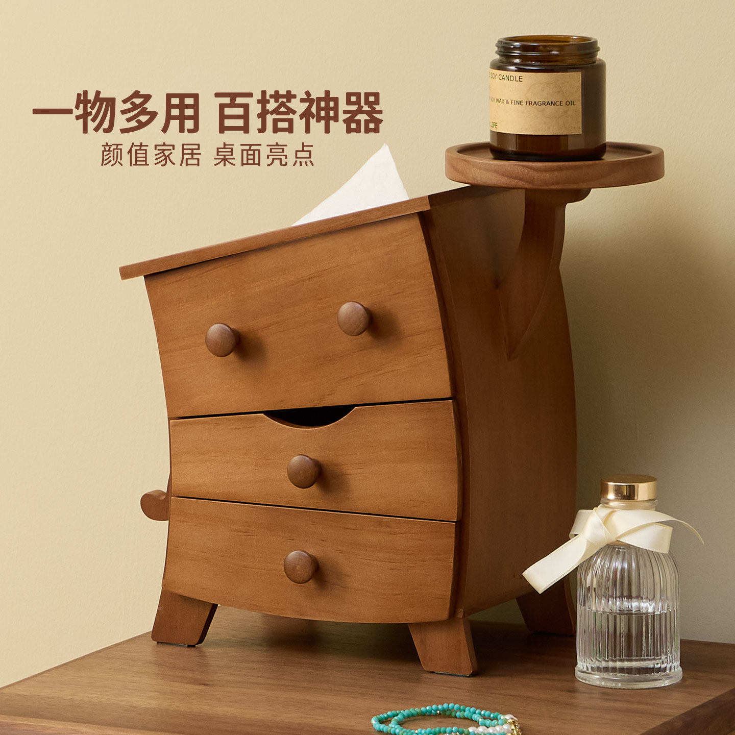 梵瀚 纯实木纸巾盒创意摆件乔迁新家礼物桌面抽纸玄关钥匙收纳盒