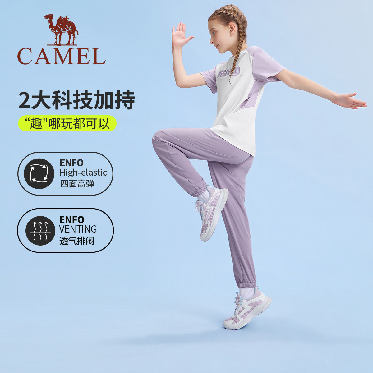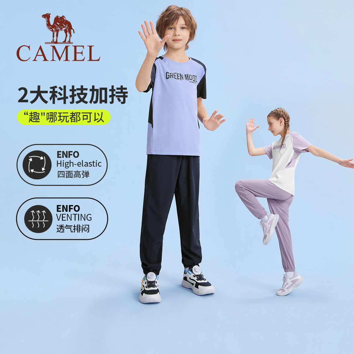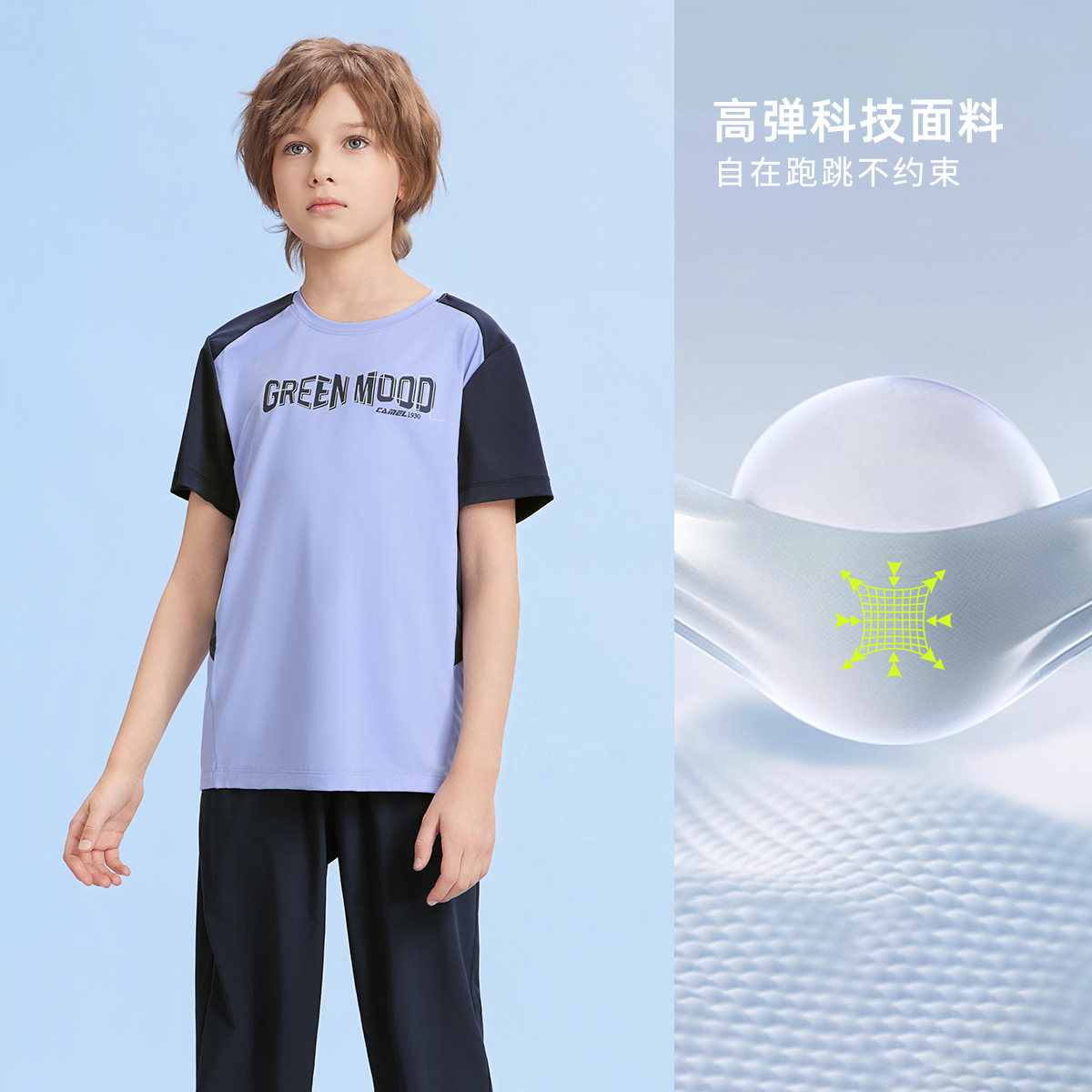 小骆驼儿童运动套装2026新款休闲2件套冰感男女童夏季短袖T恤长裤