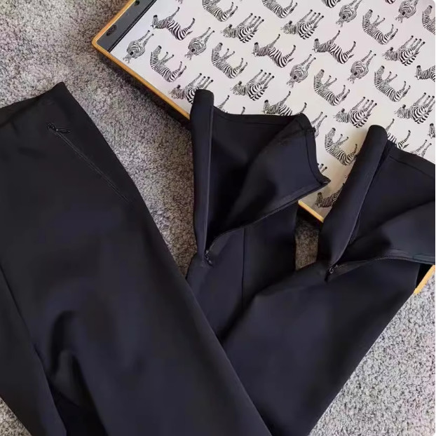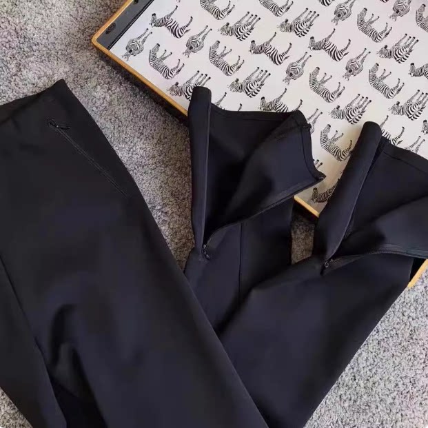 超火弹力打底裤子女款春夏季高腰直筒修身小脚九分紧身健美拉链裤