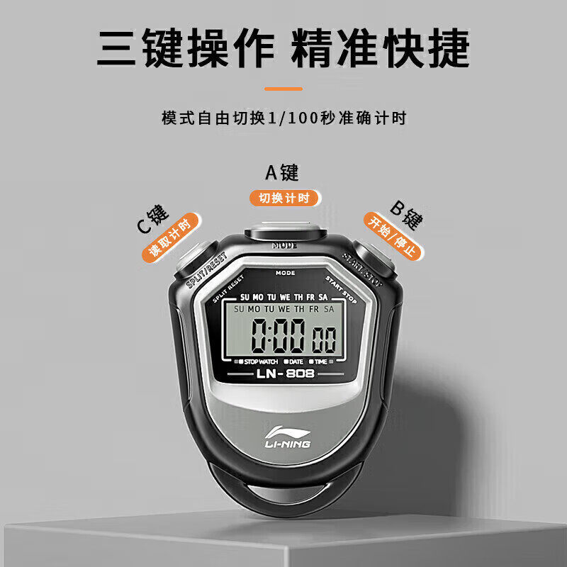 李宁秒表裁判体育老师专用计时器田径运动专业比赛防水电子秒表