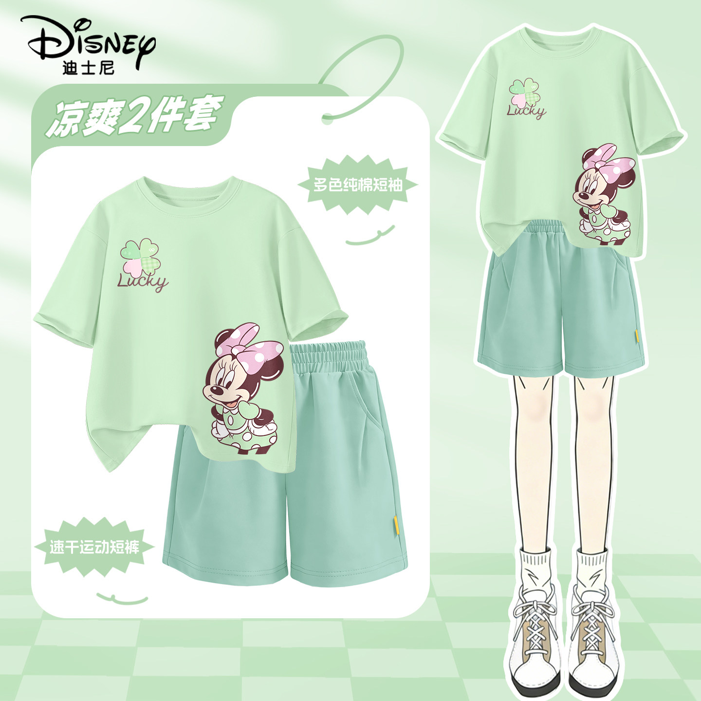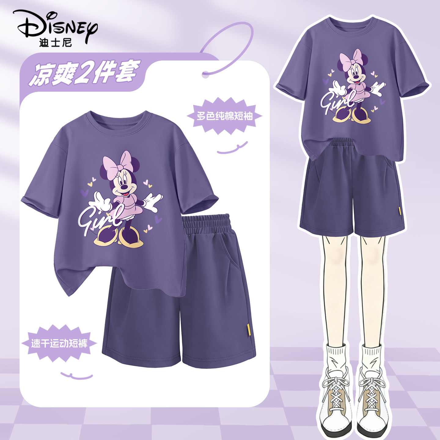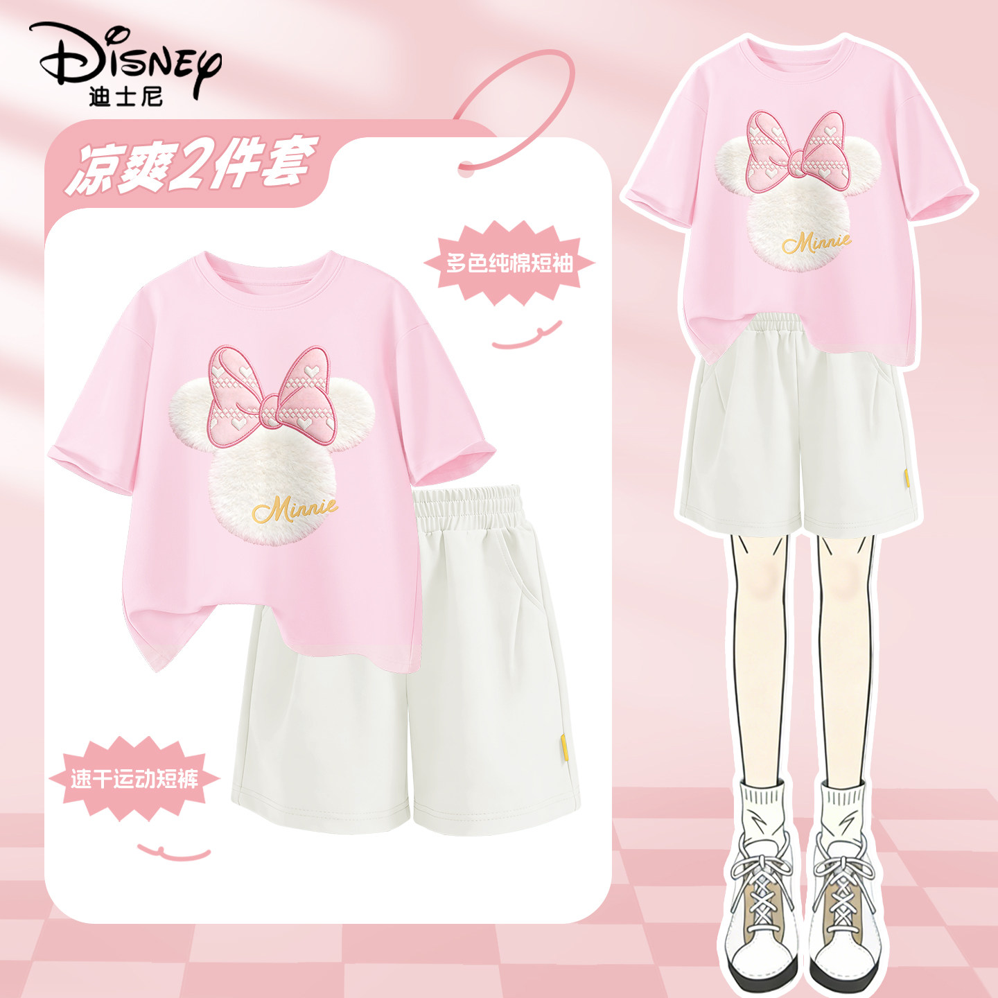 迪士尼女童套装夏季短袖T恤短裤两件套2026新款运动童装儿童夏装