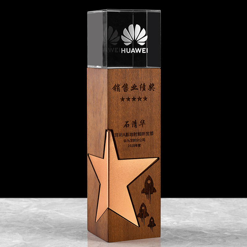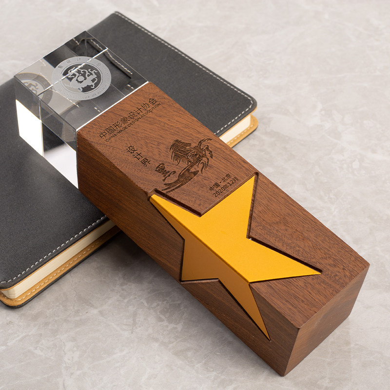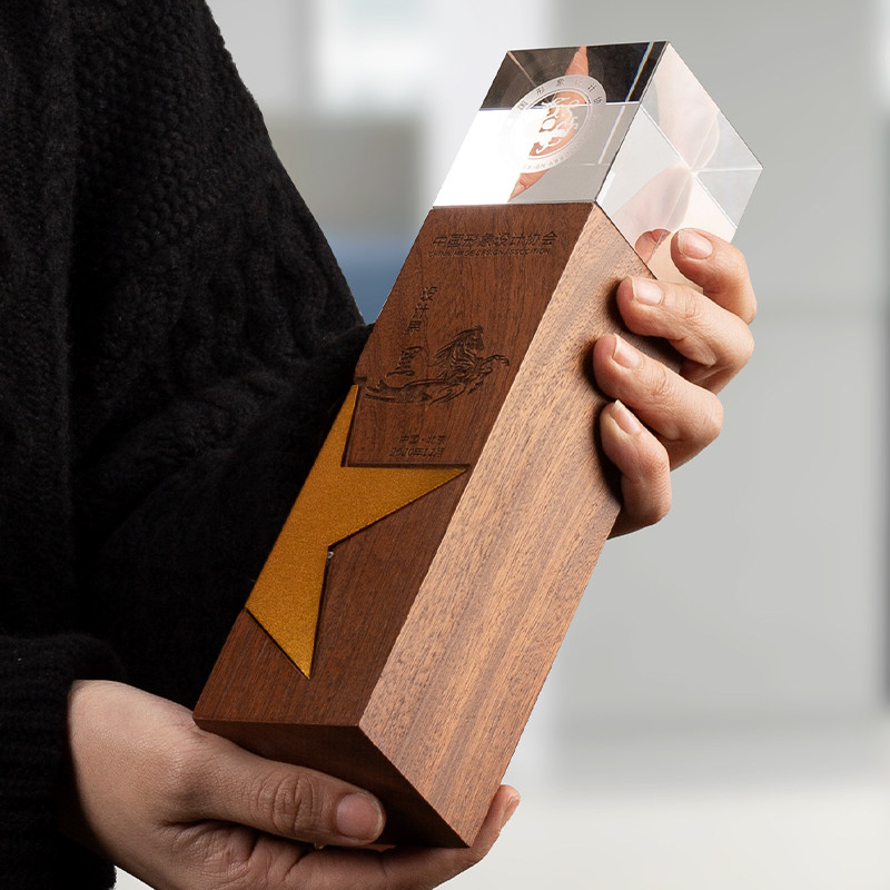 实木水晶奖杯定制定做创意刻字企业比赛年会颁奖荣誉奖牌制作