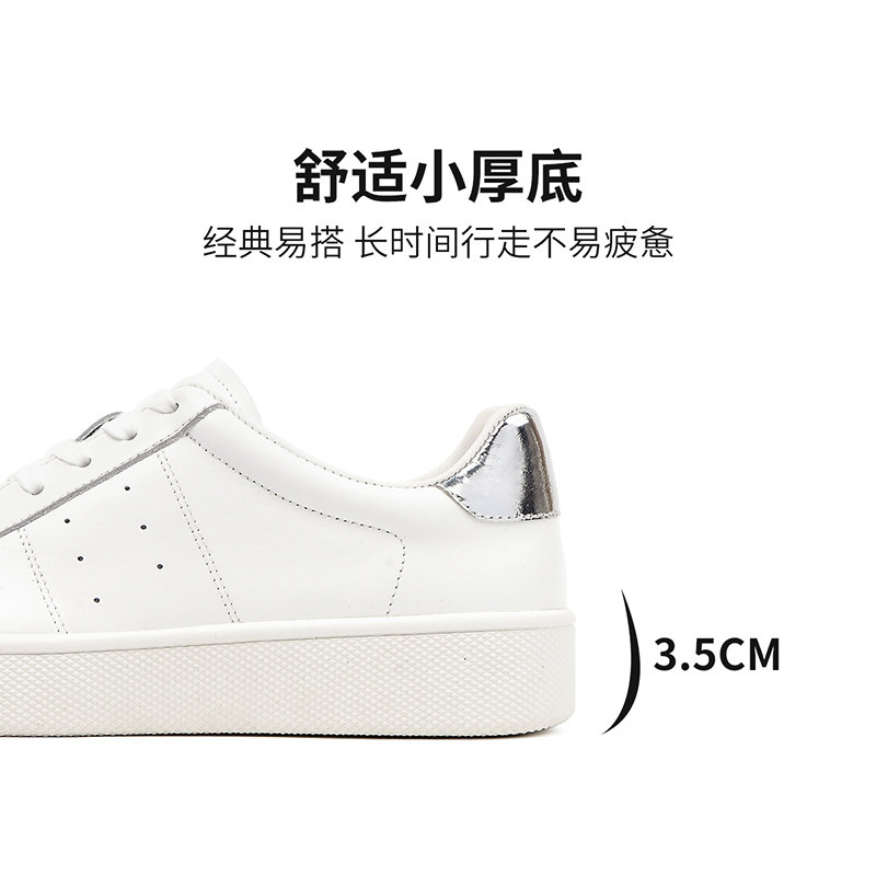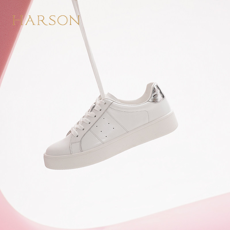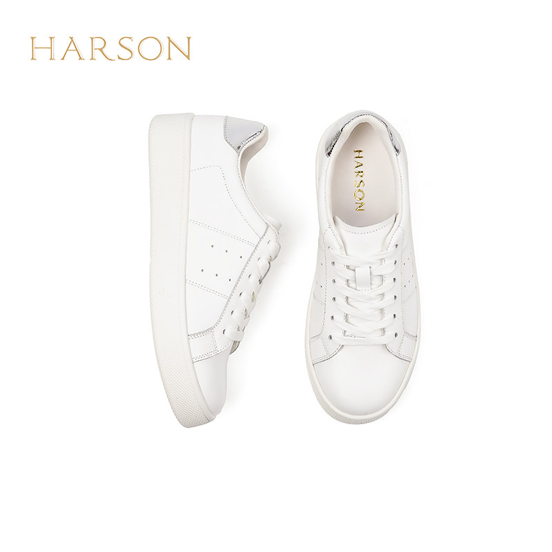哈森简约风圆头平跟小白鞋夏舒适透气百搭通勤休闲板鞋HCS258405