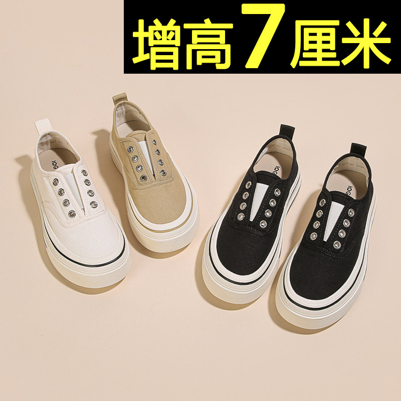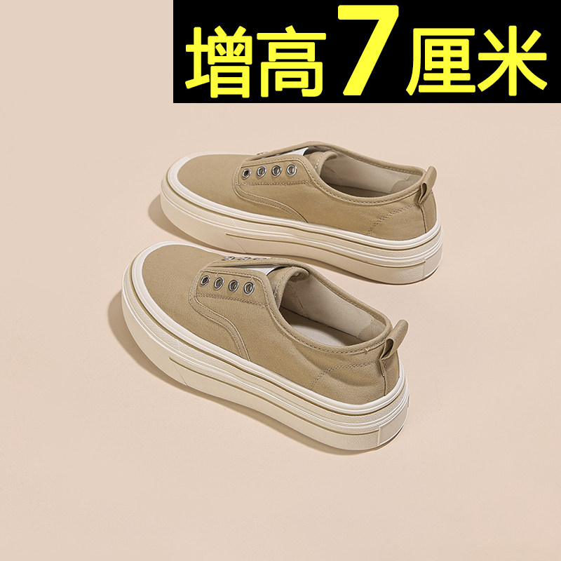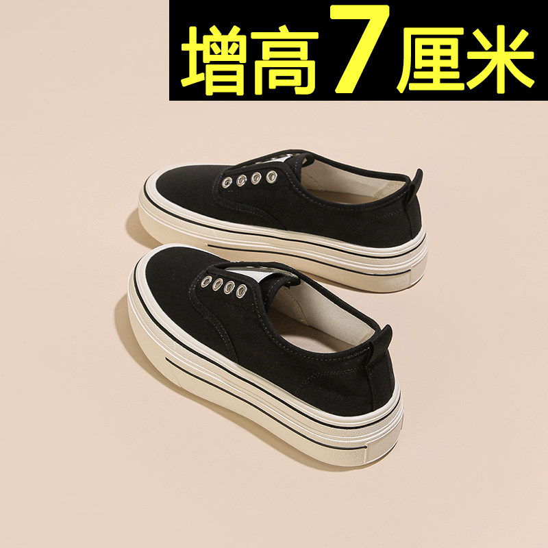 厚底小白鞋女2026夏季薄款内增高一脚蹬帆布鞋轻便百搭透气板鞋