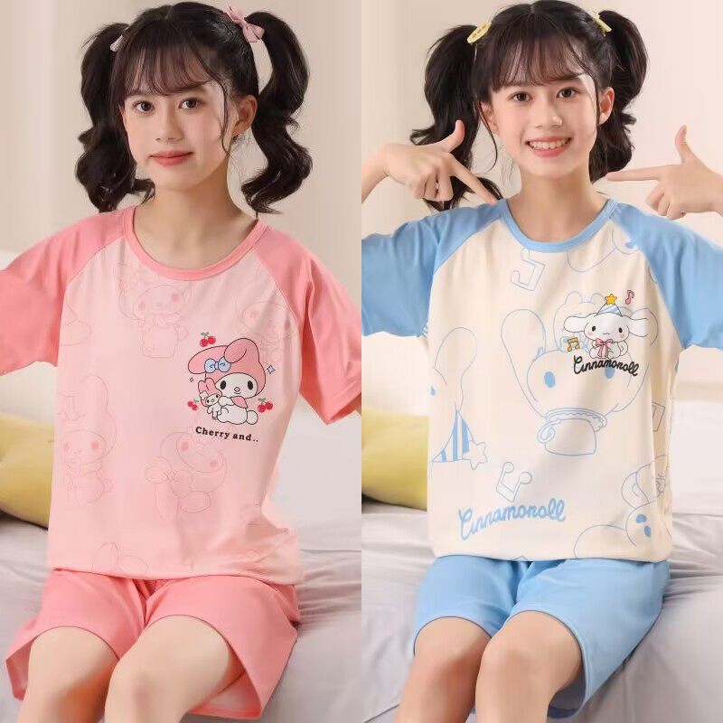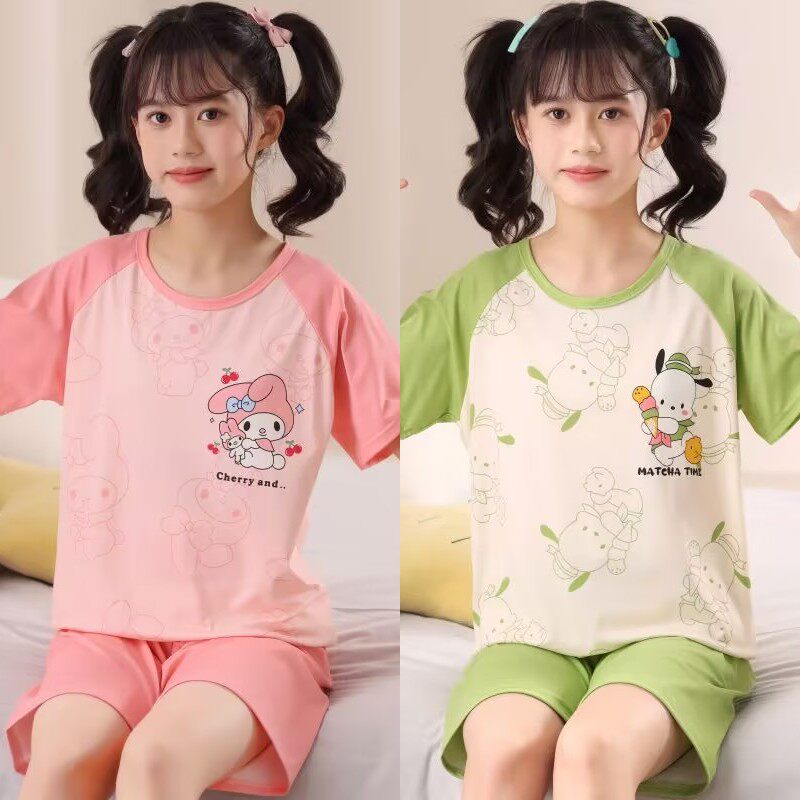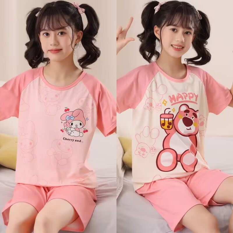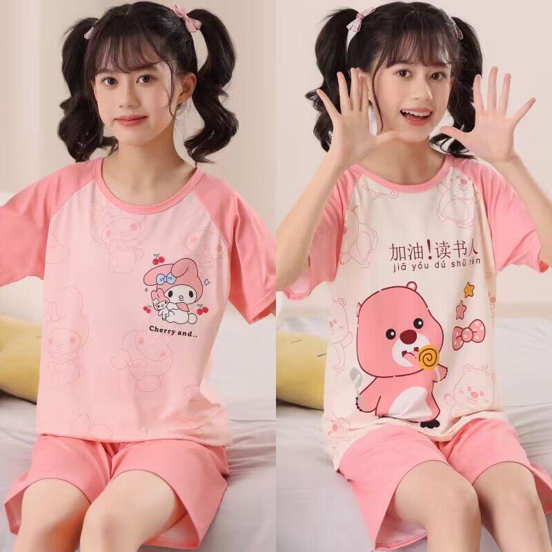女童睡衣夏季纯棉短袖薄款2026新款儿童女孩夏款中大童套装家居服