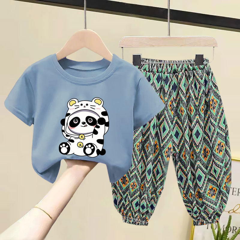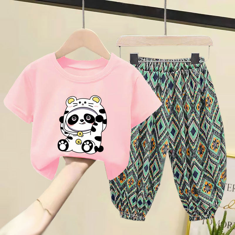 男女童套装2025夏季新款洋气儿童衣服纯棉短袖T恤长裤宝宝两件套
