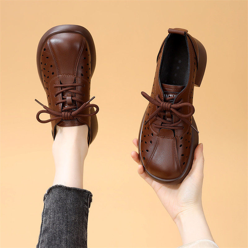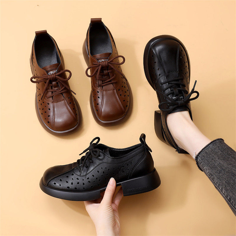 百搭乐福鞋女2026新款春夏镂空透气妈妈鞋显瘦软底不累脚圆头单鞋
