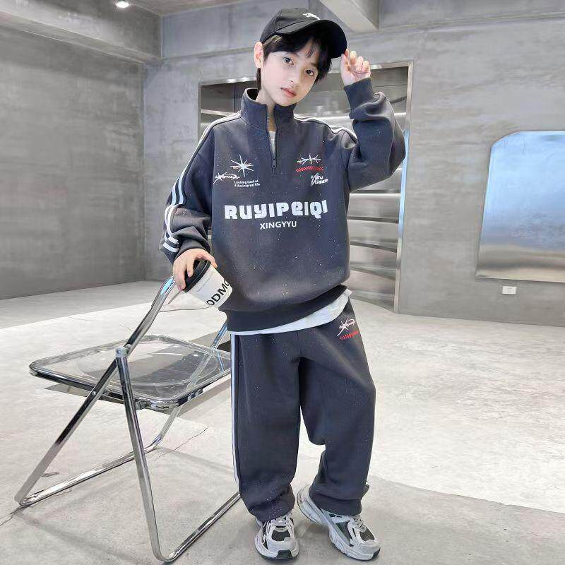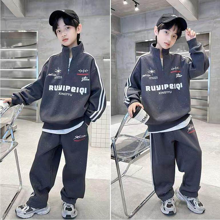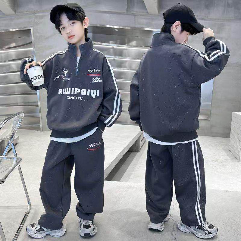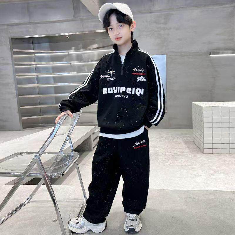 男童春装套装2025新款春季卫衣中大儿童帅气时髦男孩春秋款运动潮