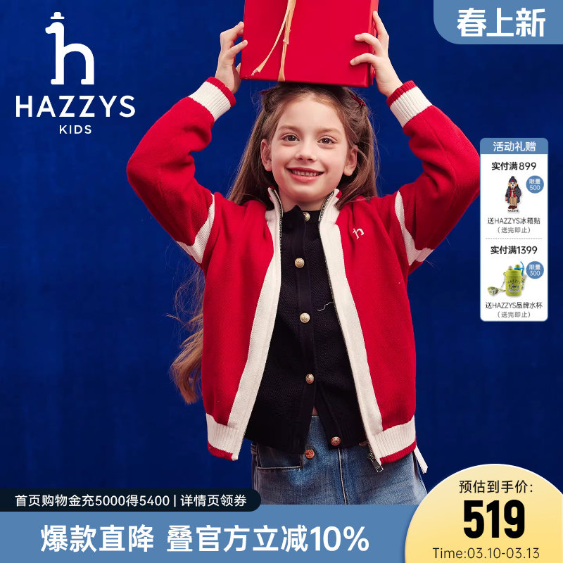 hazzys哈吉斯童装男女童毛衣2026春新年中大童喜庆开衫针织上衣