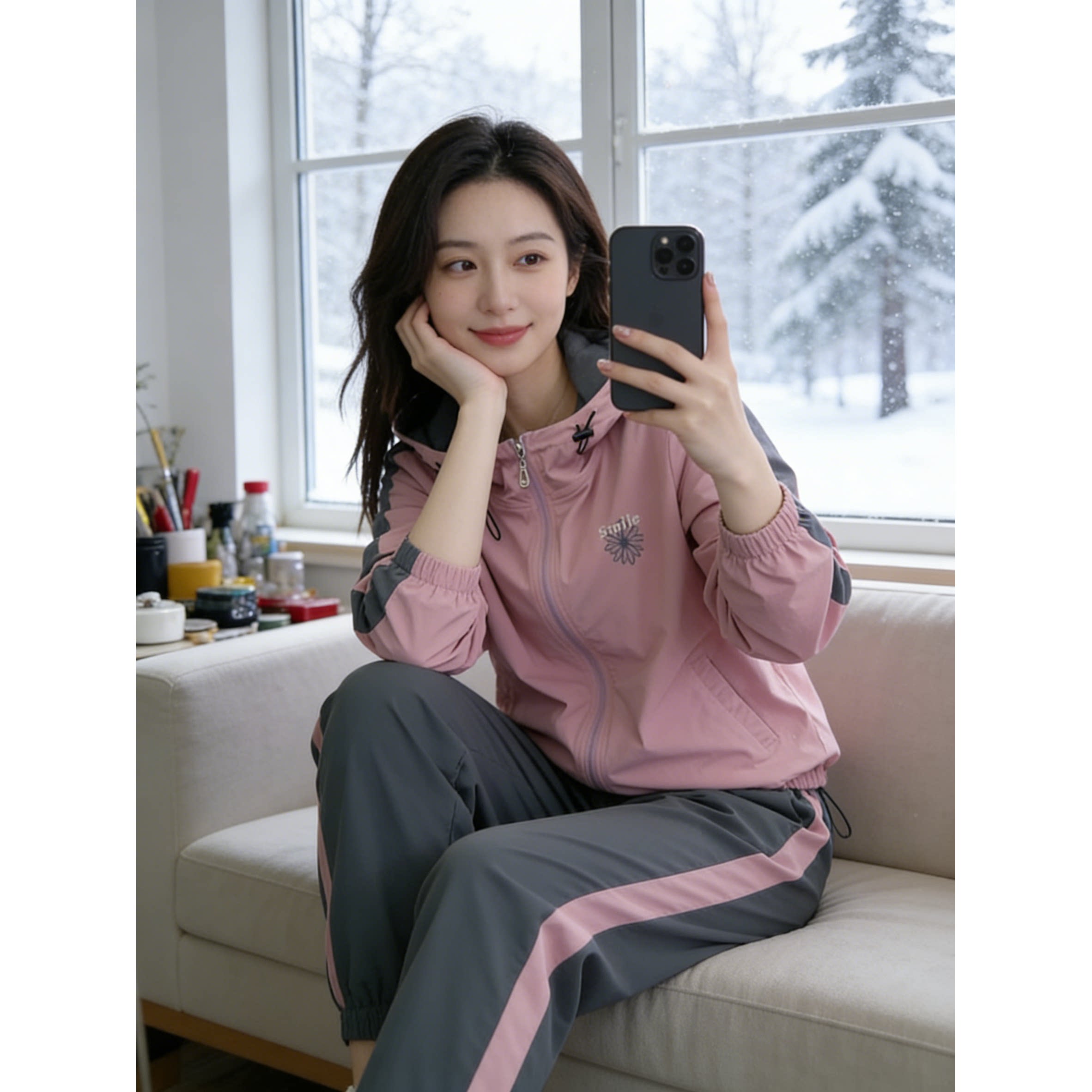 休闲运动套装女2026新款春秋季小个子时尚连帽外套跑步长裤两件套