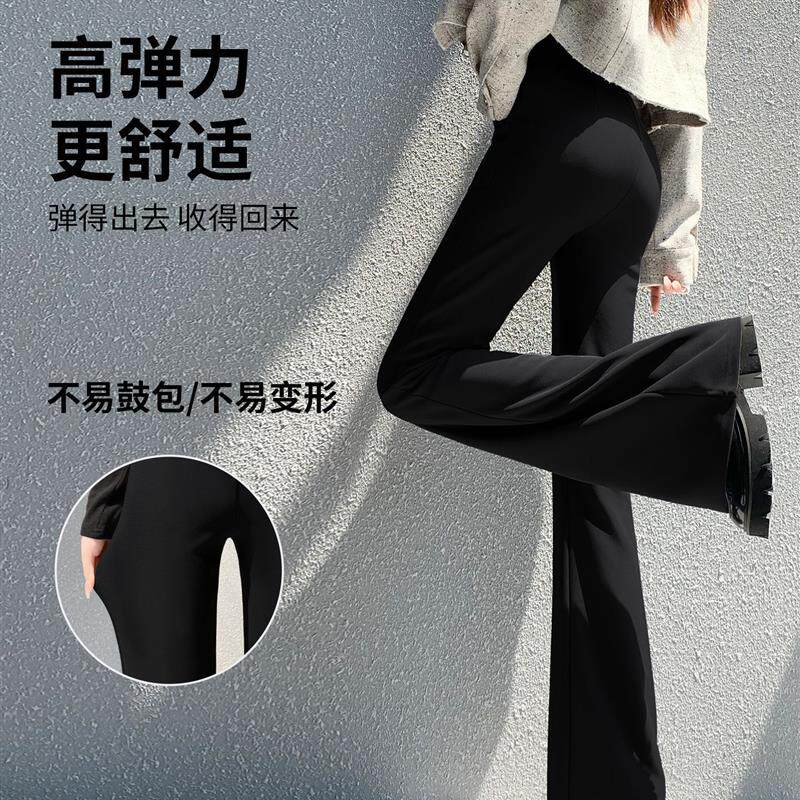 黑色加绒喇叭裤女2025新款秋冬季加厚微喇西装休闲高个子加长裤子