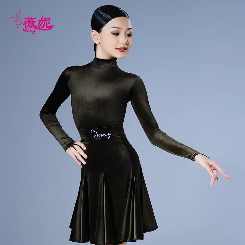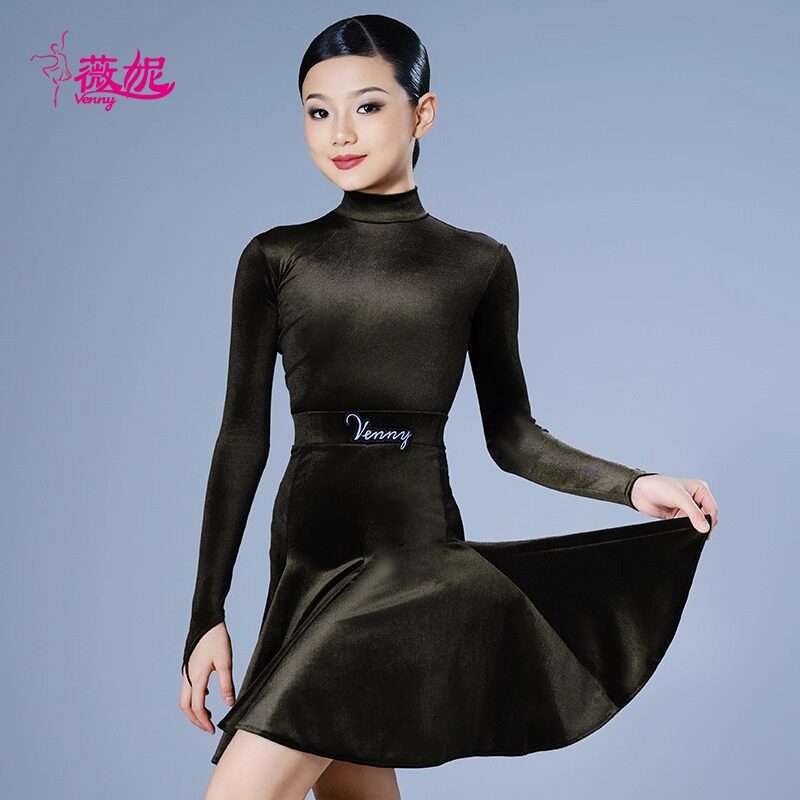 venny薇妮拉丁舞高端比赛服丝绒无鱼骨体协国标考级规定服大摆裙