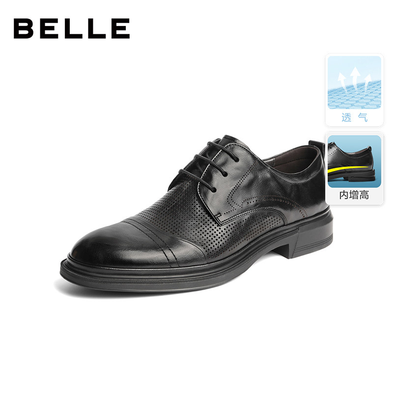 百丽商务正装真皮鞋透气男士夏季新款厚底增高新郎婚鞋子A1220CM3