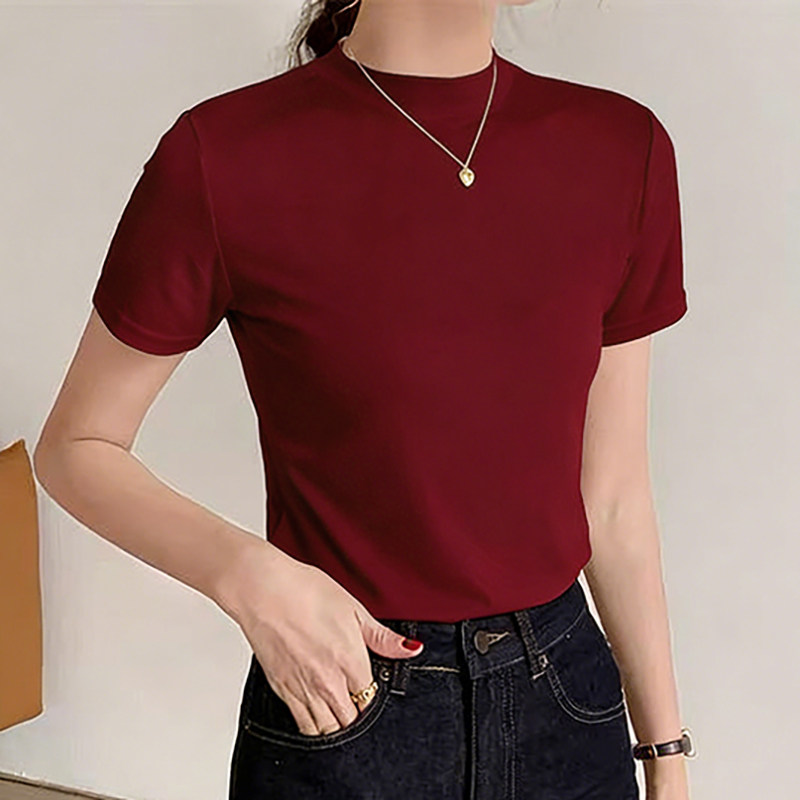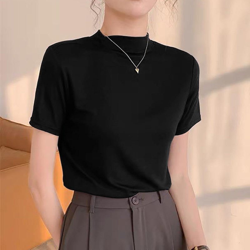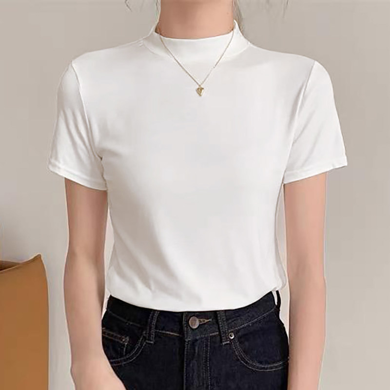 修身显瘦立领短袖t恤女款爆款2026早春新款女装百搭半高领上衣