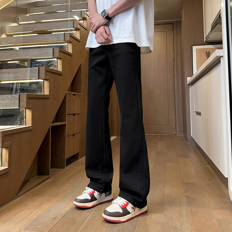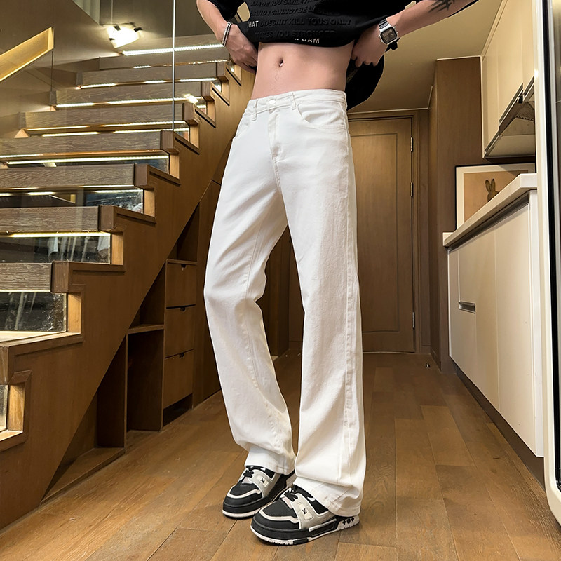 美式高街vibe白色男士牛仔裤男生修身直筒微喇男款裤子弯刀阔腿裤