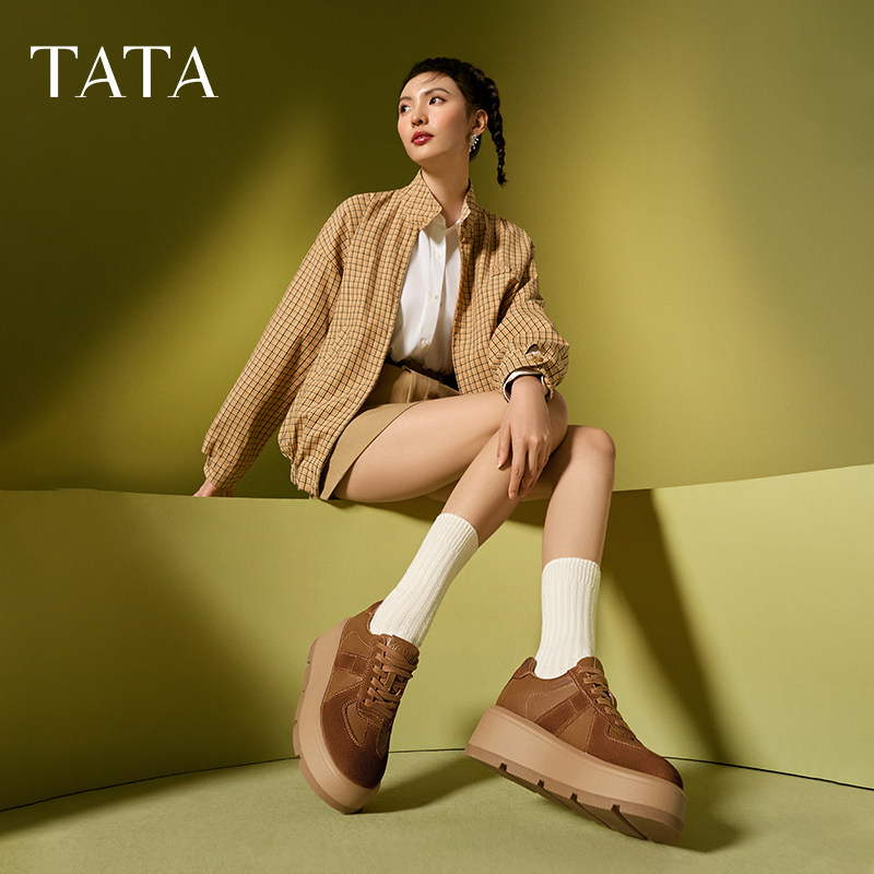 TATA他她糕糕鞋厚底德训鞋女鞋子透气松糕鞋休闲板鞋新款CX901AM5