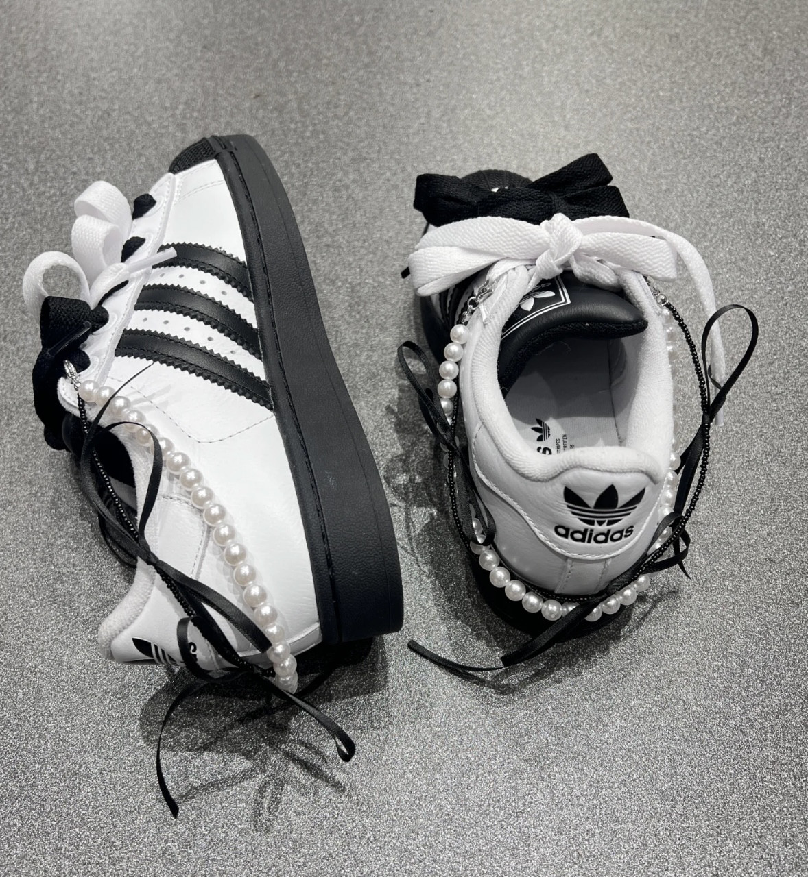 黑色丝带蝴蝶结珍珠鞋挂链鞋扣配饰适配阿迪贝壳头板鞋芭蕾风鞋链