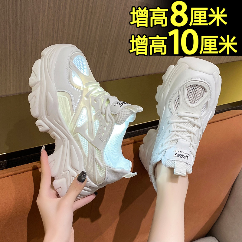 厚底内增高小个子8cm老爹鞋女2026新款夏季网面透气休闲运动鞋子