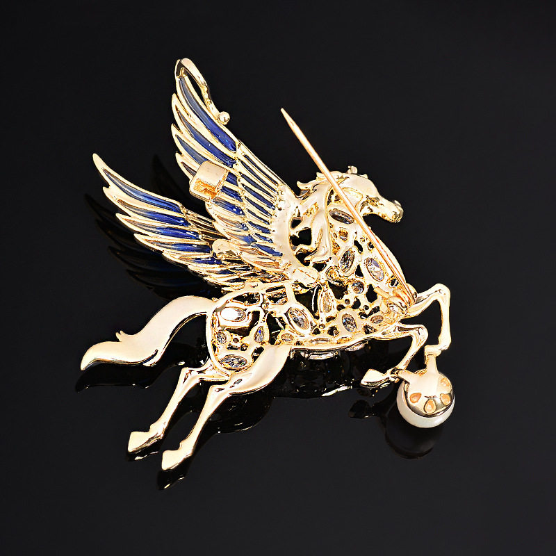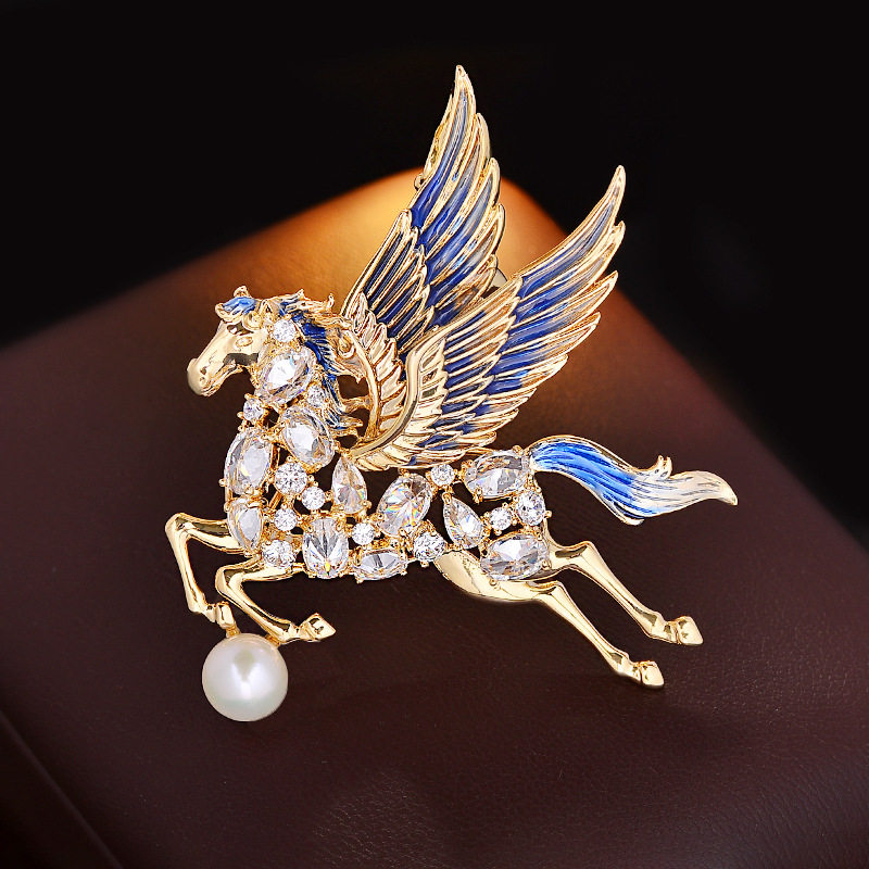 高端创意珐琅彩绘飞马胸针小众设计微镶锆男女款别针个性气质胸花