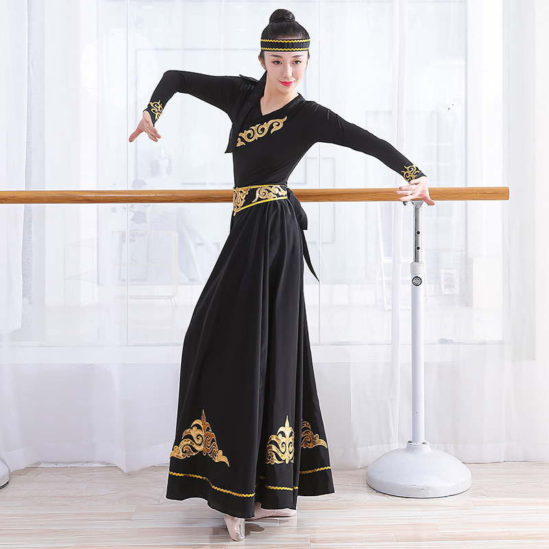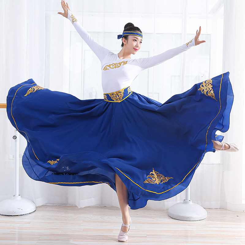 蒙古族舞蹈练习裙成人开场舞演出裙新疆维族练功大摆裙舞蹈服女装