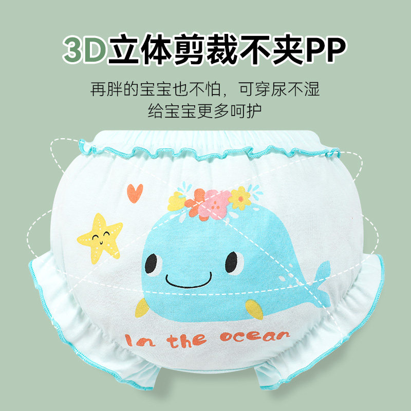 婴儿内裤女宝宝夏季纯棉小童全棉训练短裤小女孩不夹pp面包裤100%