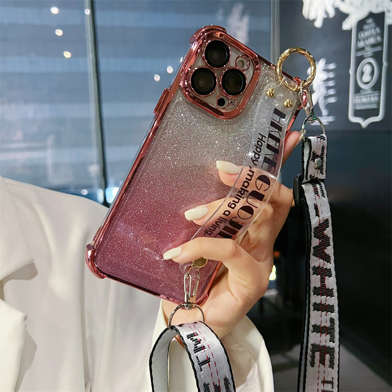 适用苹果16Promax手机壳16e自带镜头膜iPhone15四角气囊14防摔17渐变闪粉13pm斜挎12腕带支架全包镜头15pro