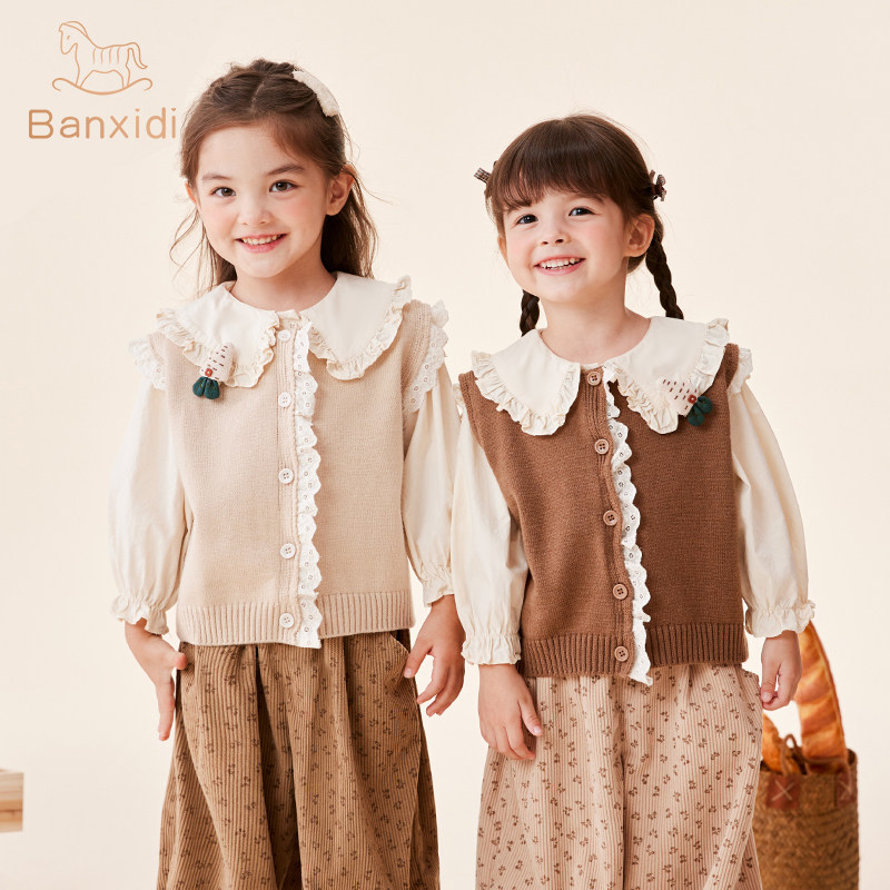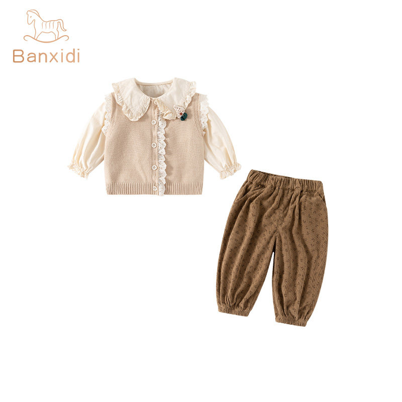 班喜迪女童春装套装2026新款洋气宝宝毛衣马甲童装春秋季儿童衣服