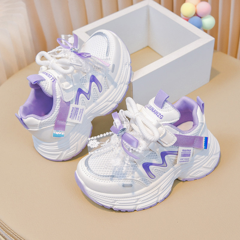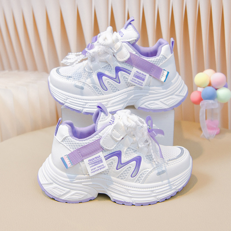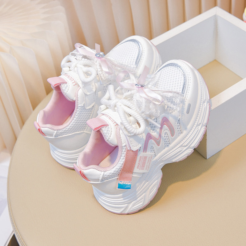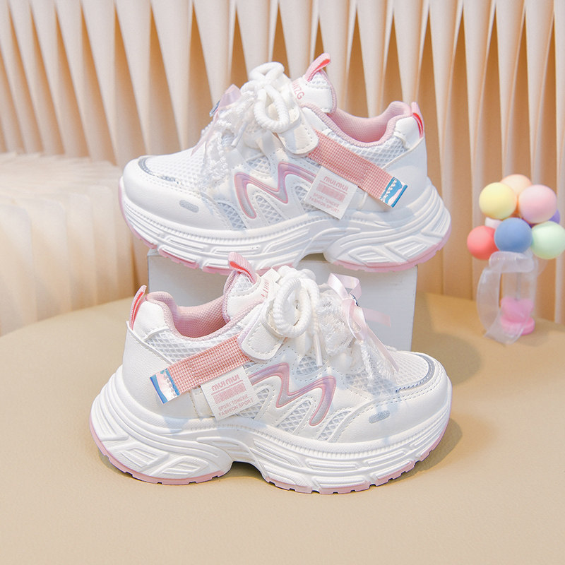女童鞋子春季2026新款女孩儿童运动老爹鞋大童网面透气公主小白鞋