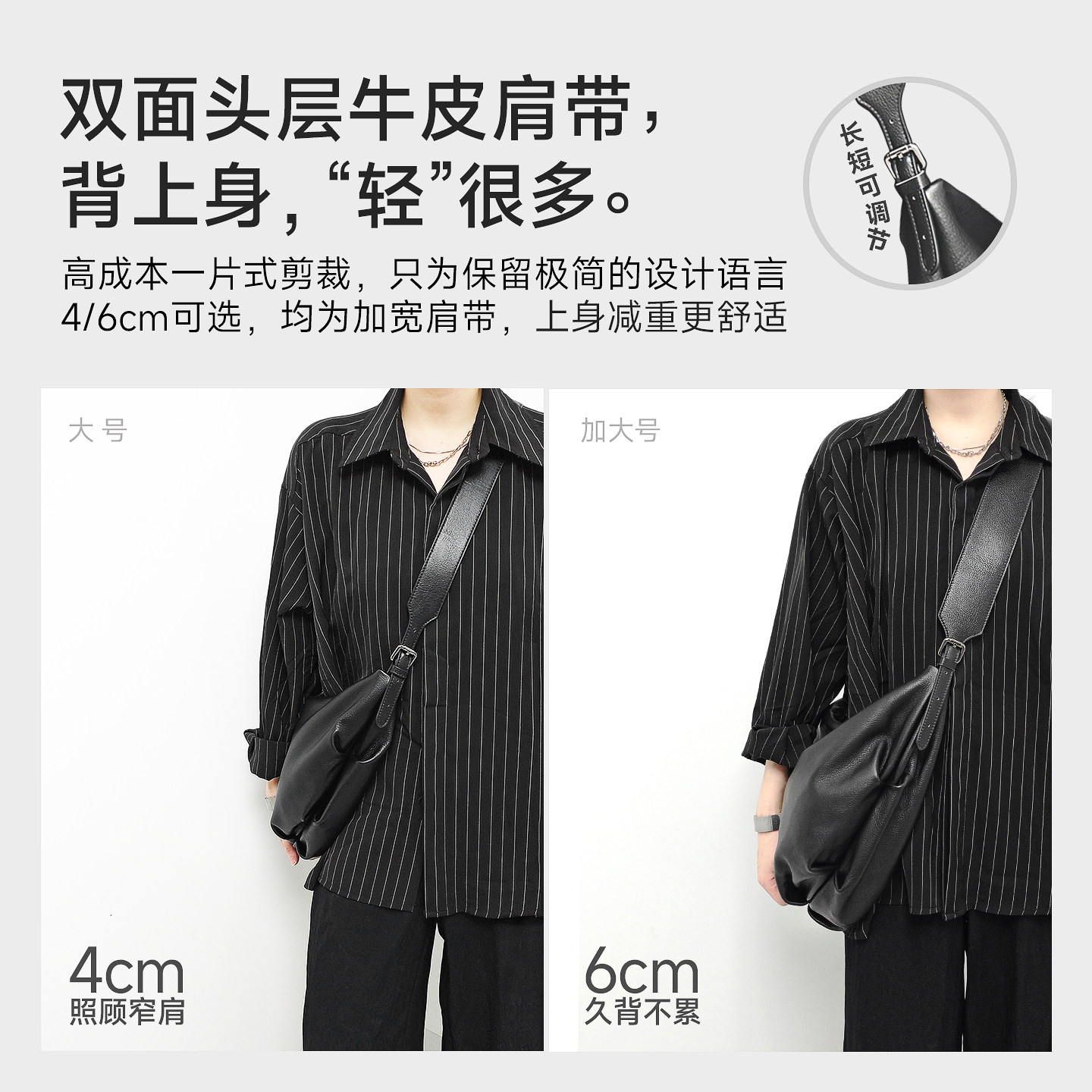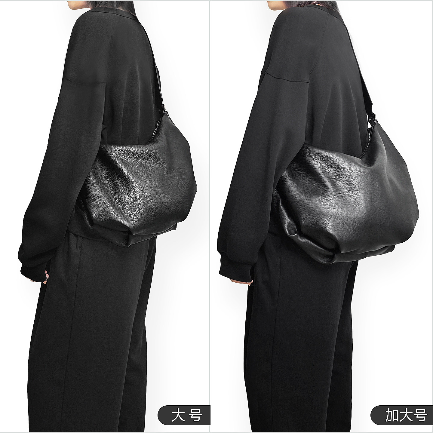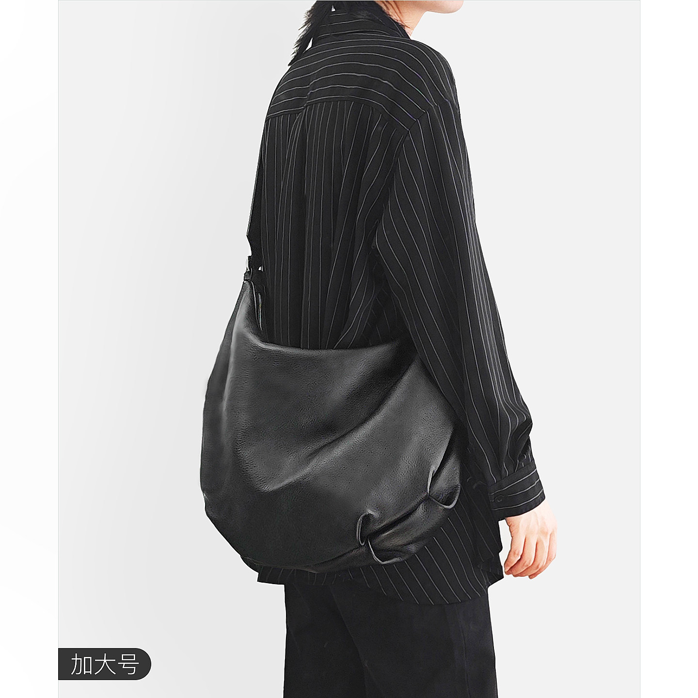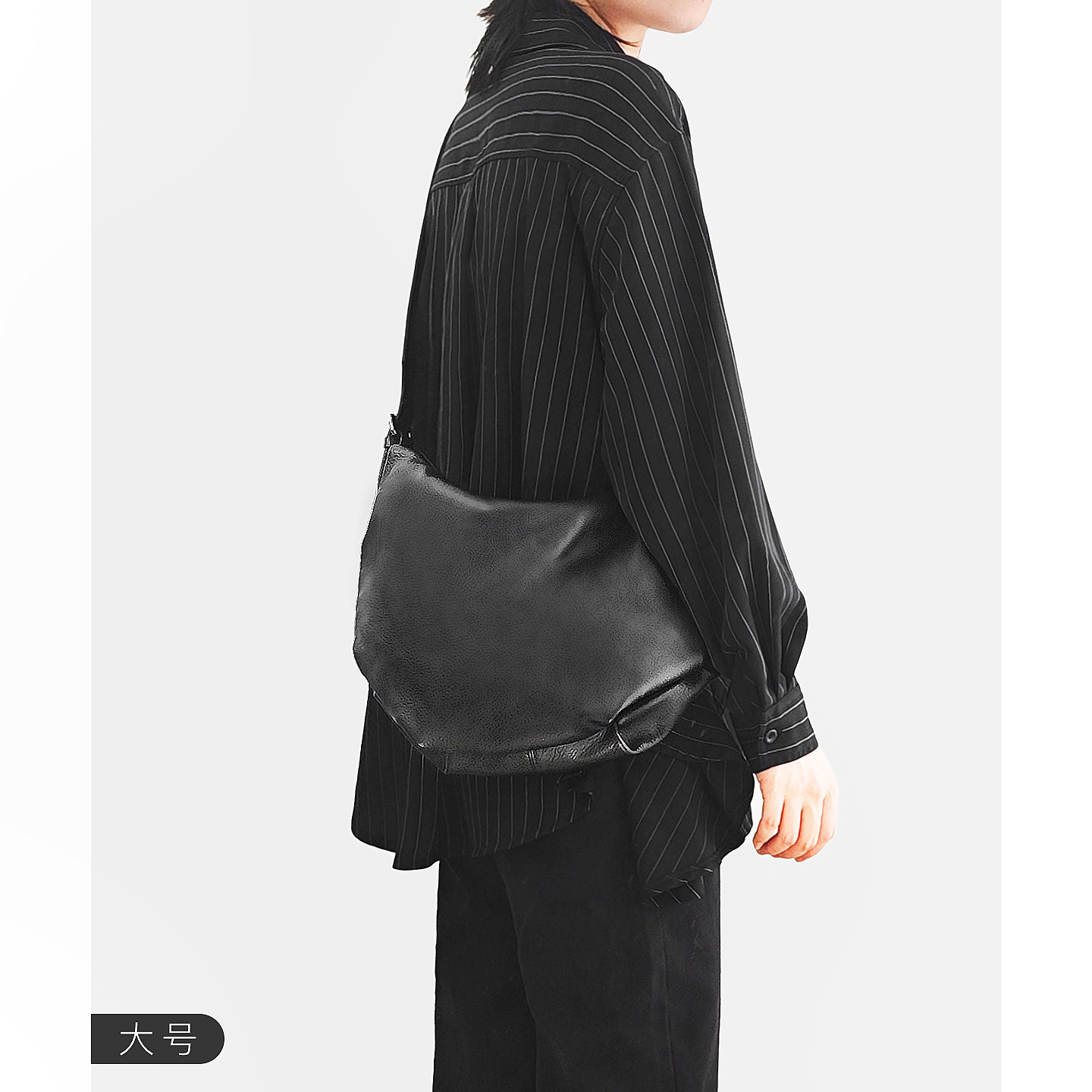黑域新款头层牛皮新月包真皮斜挎包宽肩带大容量超软饺子包托特包