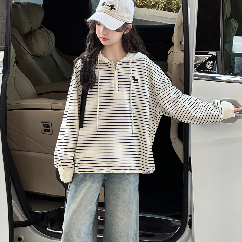 韩国童装女童条纹卫衣儿童连帽打底衫洋气2026春装新款女孩上衣潮