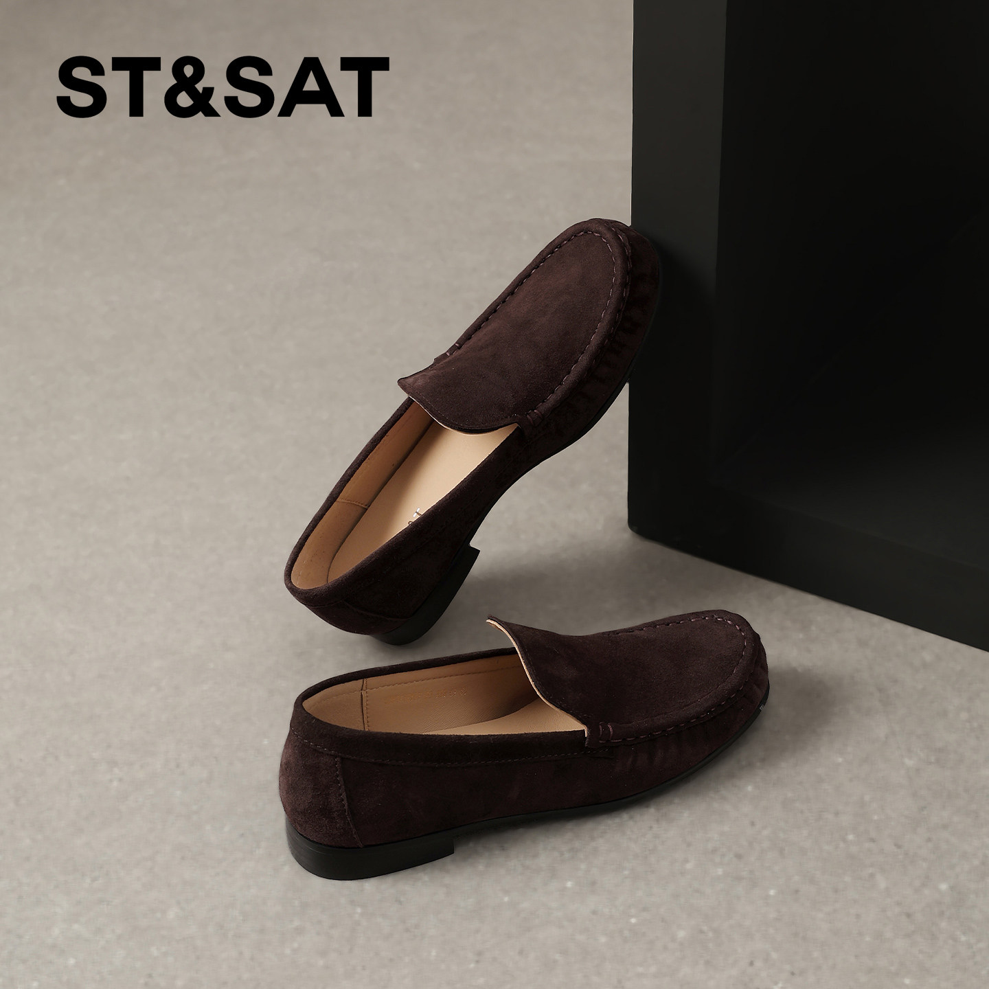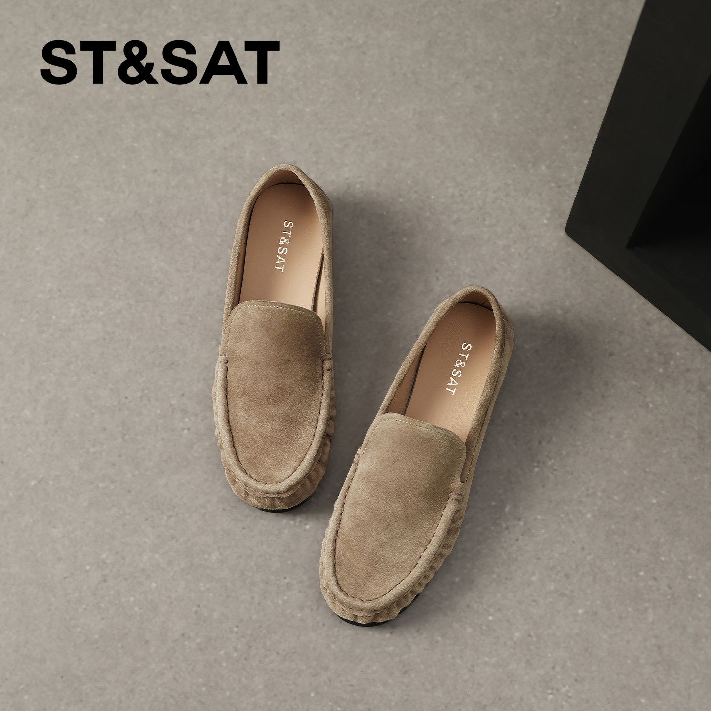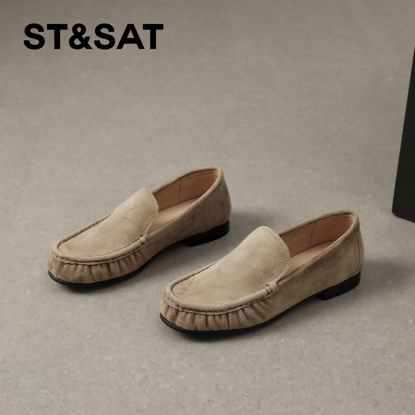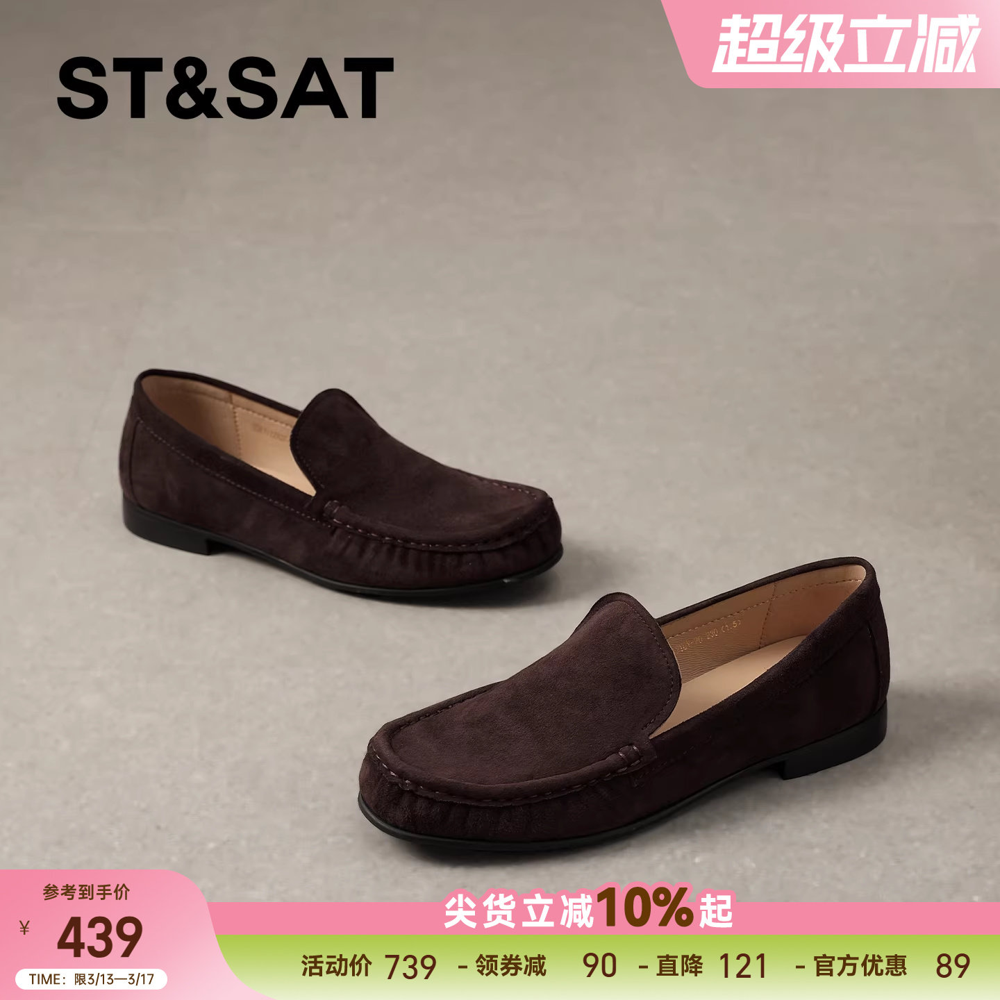星期六复古风真皮乐福鞋女2026春季新款圆头平底一脚蹬懒人鞋单鞋