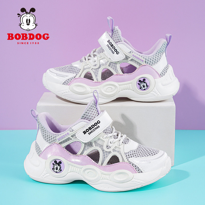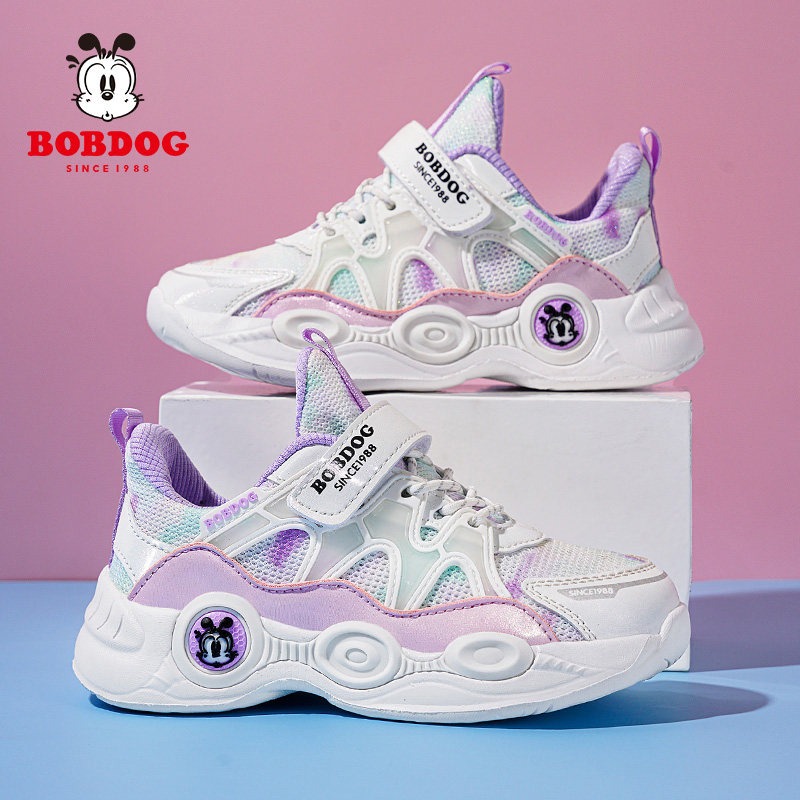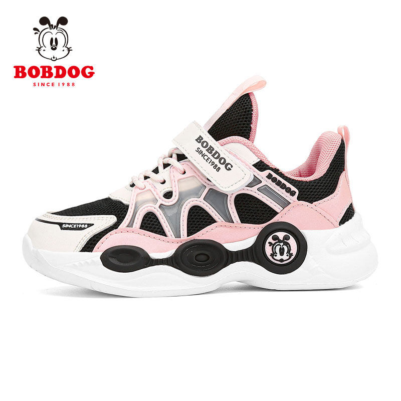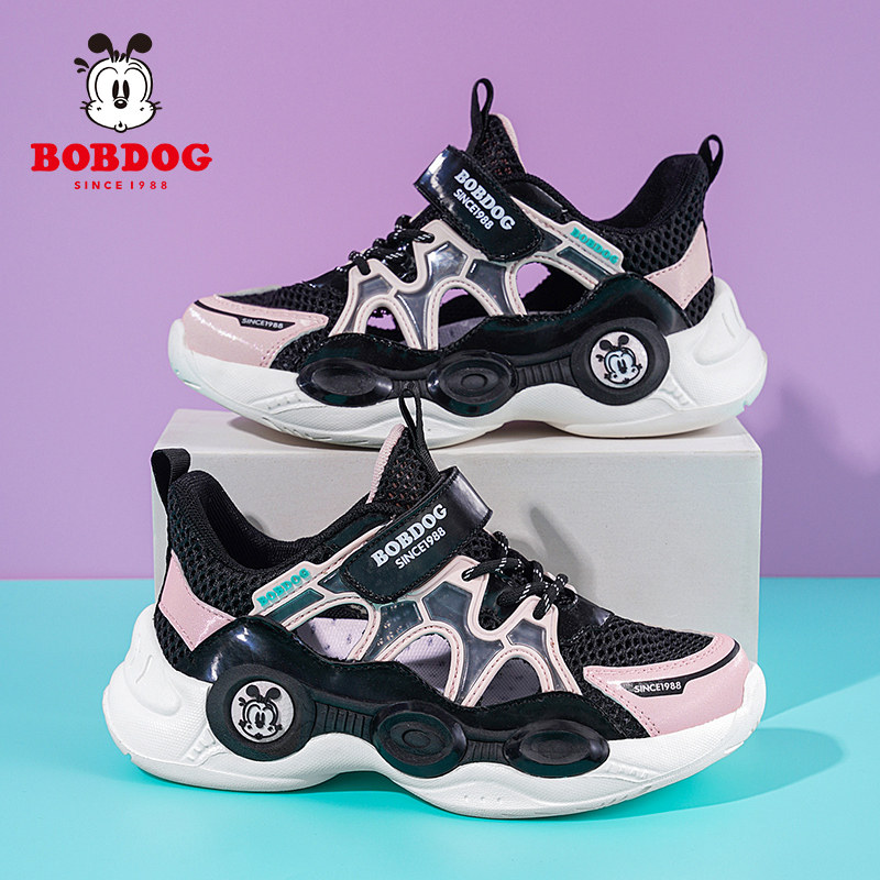 巴布豆女童鞋子春夏季网面透气儿童运动鞋2026新款大童黑色女孩鞋