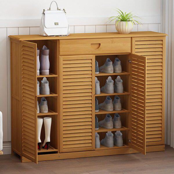 2024新款入户鞋柜一体靠墙家用门口好看防尘收纳楼道楠竹透气鞋架