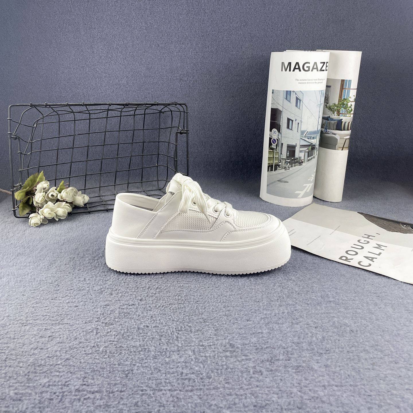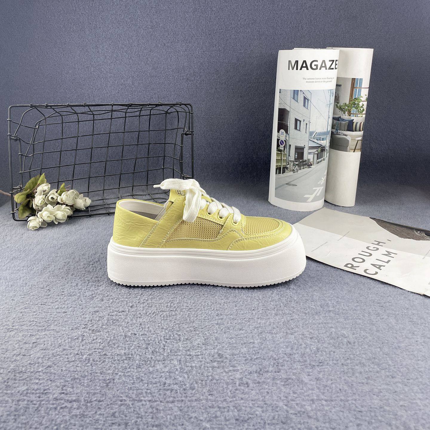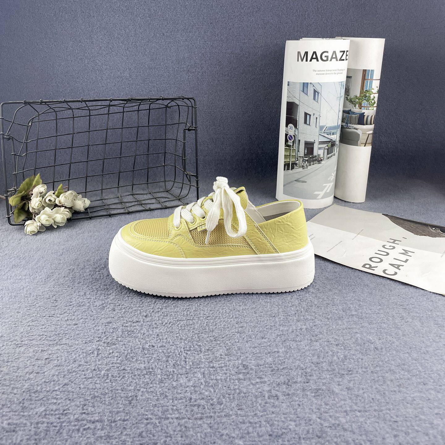 真皮专柜断码春秋新款牛皮增高厚底小白鞋透气网面两穿休闲板鞋女