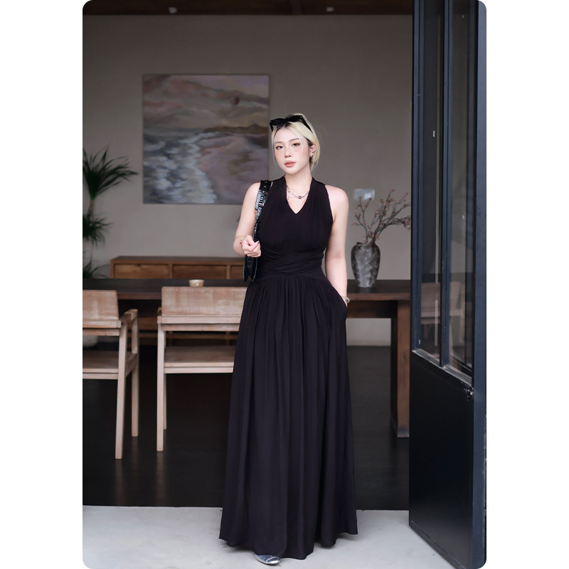 糯米子[迷情威尼斯]挂脖连衣裙女夏季微胖mm高级感法式度假风裙子
