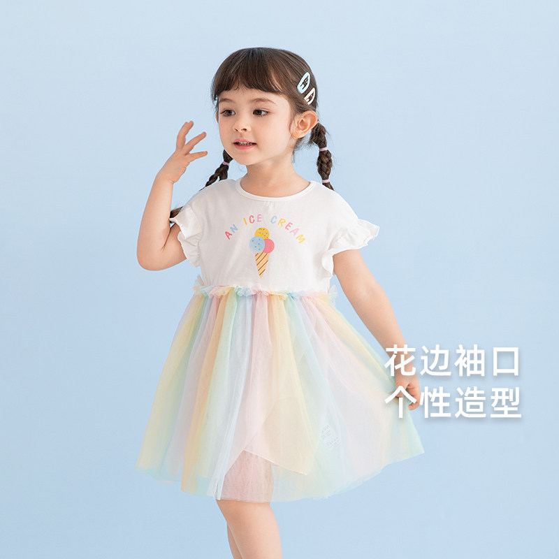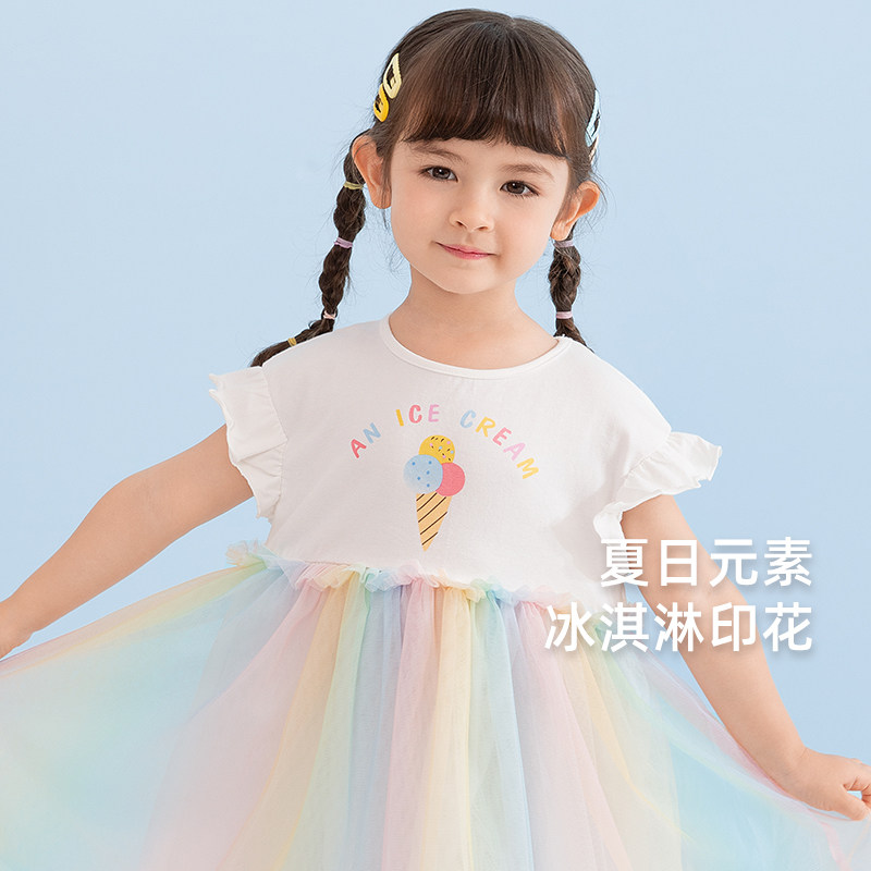 女童连衣裙夏季新款宝宝甜美短袖纱裙儿童夏装薄款裙子潮小童衣服