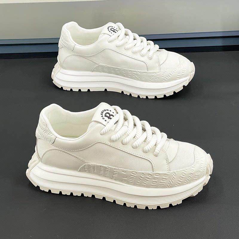 白色老爹鞋男鞋厚底网面白鞋透气休闲鞋潮2025新款内增高小白鞋男