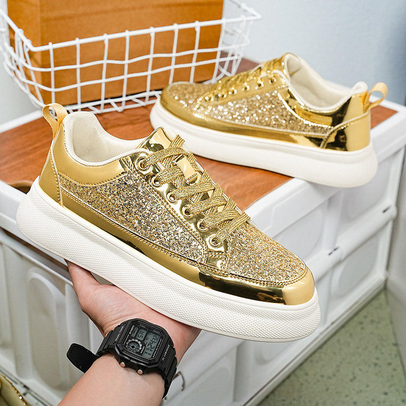 银色男鞋春夏季金色亮片休闲板鞋潮牌高级感痞帅炸街情侣鞋子一对