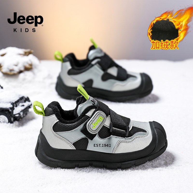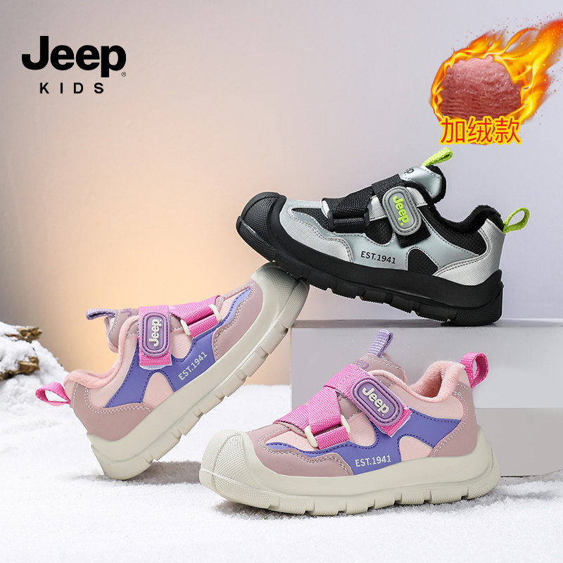 jeep男童老爹鞋2025秋冬新款网面透气加绒二棉儿童运动鞋女童鞋子