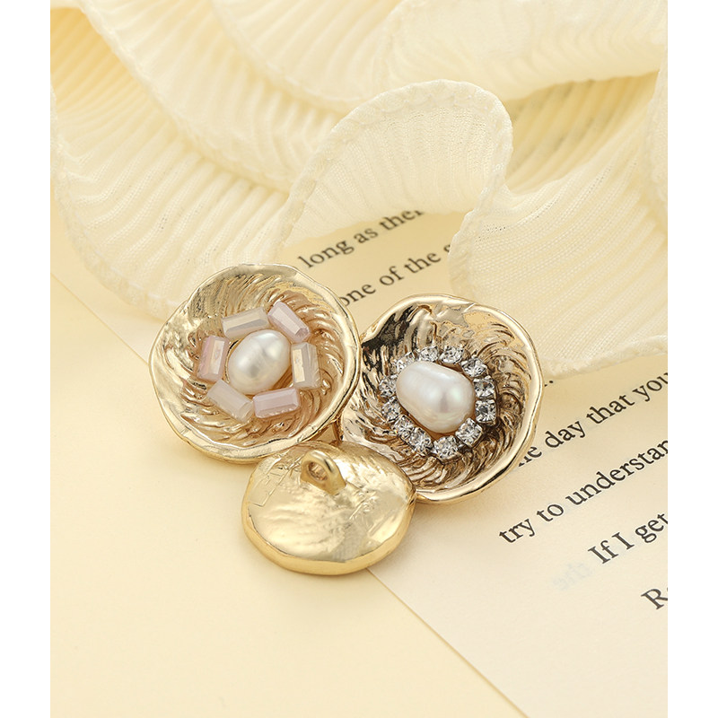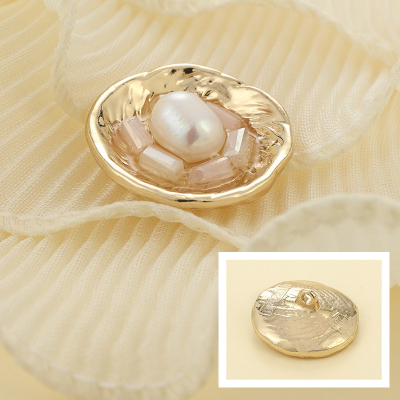 天然珍珠金属纽扣镶钻高档不规则外套毛衣大衣扣子服装装饰配件