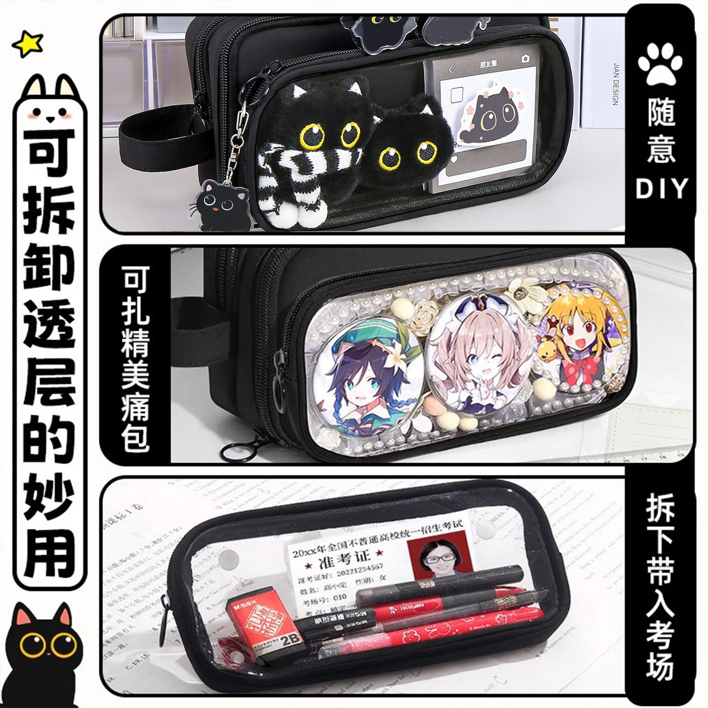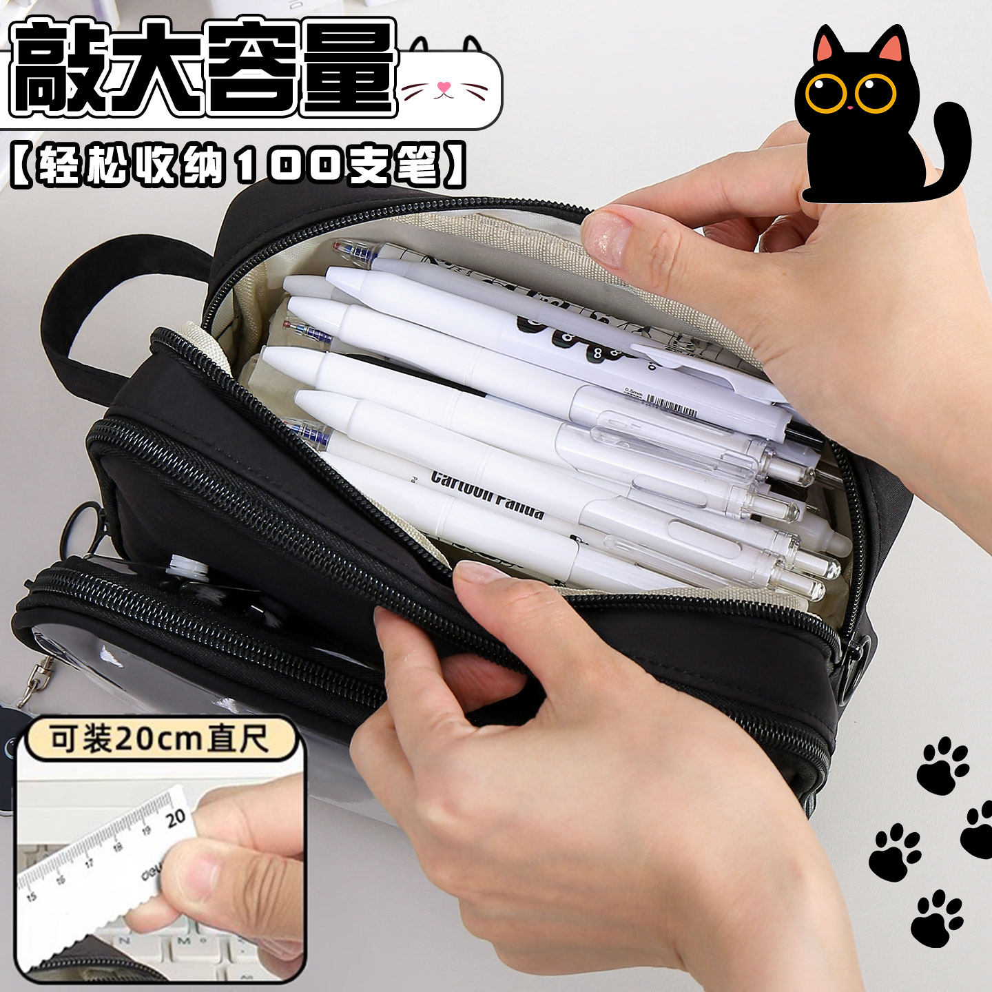 可爱围巾文具盒笔袋~可拆卸透明女生2026新款ins风大容量痛包小学生女孩耐脏男生初中生简约铅白色正版玩偶