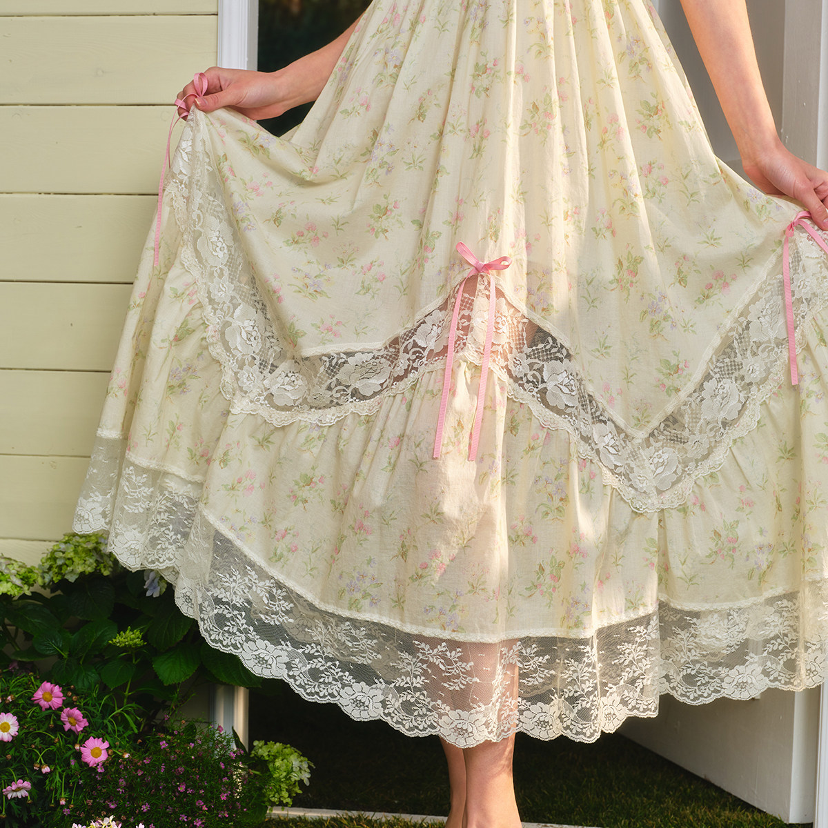 LaceMade 花神假日 法式田园度假风碎花吊带连衣裙长款夏日海边裙