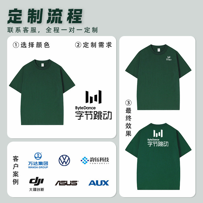 260G重磅纯棉T恤工作服定制印图logo短袖团体工衣圆领文化衫班服