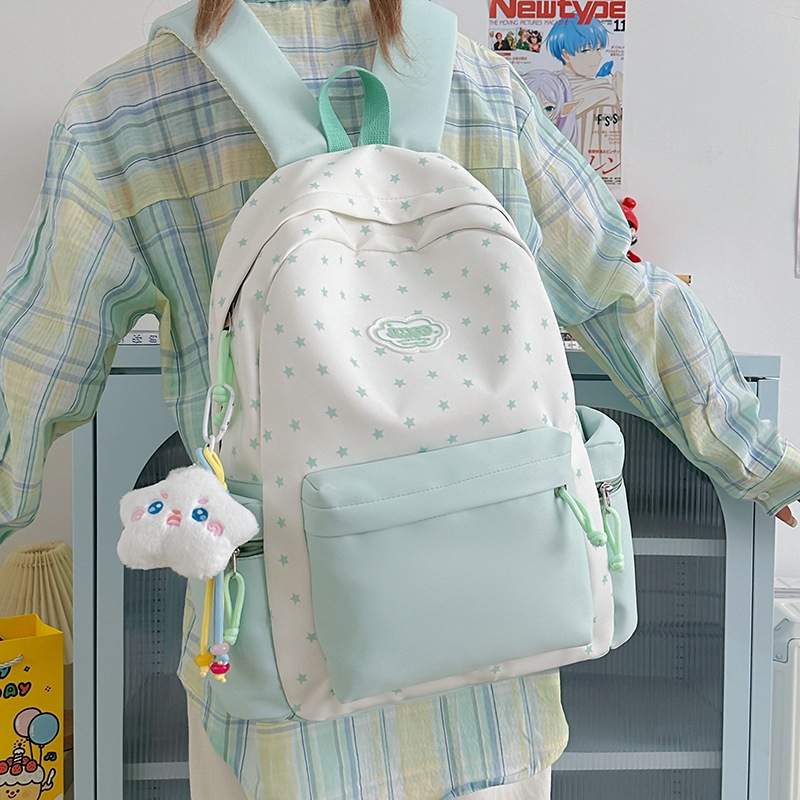 书包初中生女生ins风小众蓝色系大容量肩包高中双肩包高颜值女