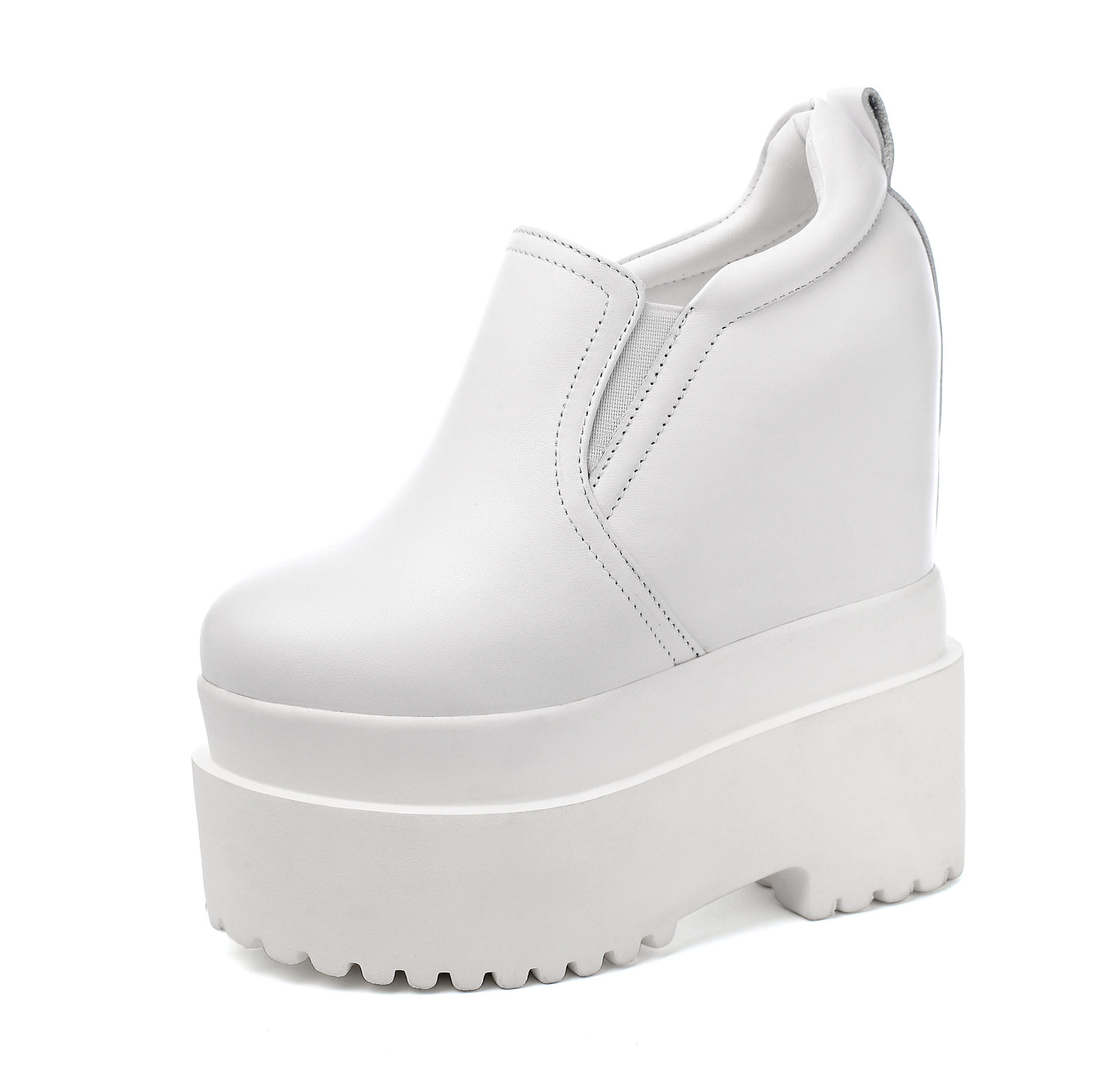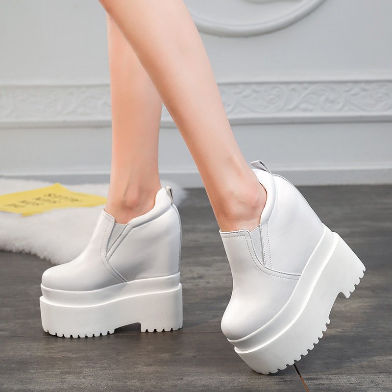 松糕厚底小白鞋超高跟16cm公分套脚真皮单鞋小个子内增高休闲女鞋