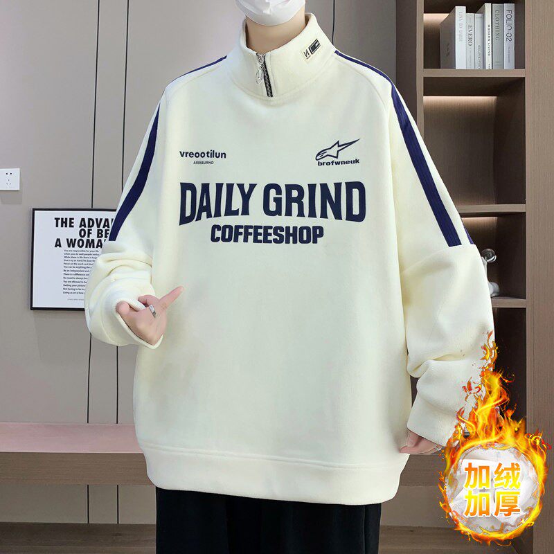 秋冬季青少年卫衣男加绒半拉链初中学生厚款大童保暖潮牌流打底衫